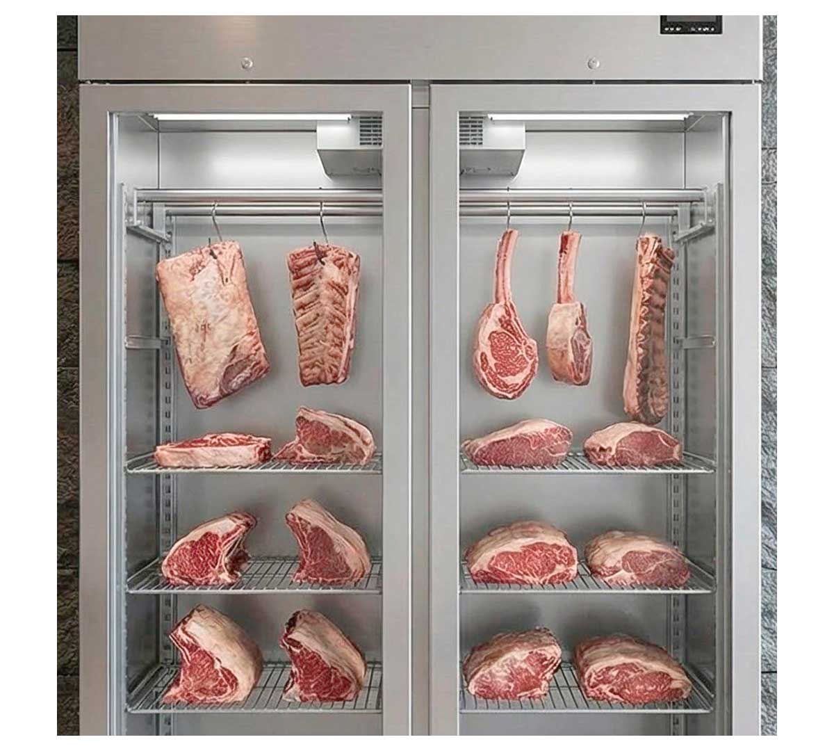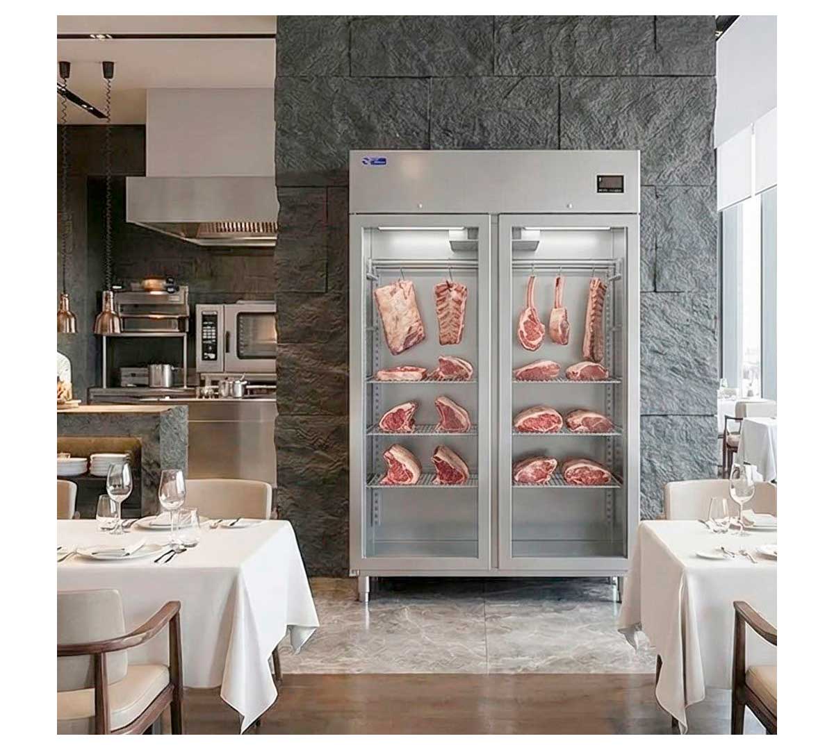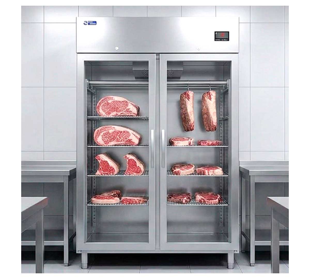 Armario especial para la maduración de carne en seco. Controla temperatura y humedad en un espacio higiénico. Tiene una capacidad 920 litros. Es ideal para restaurantes especializados.
