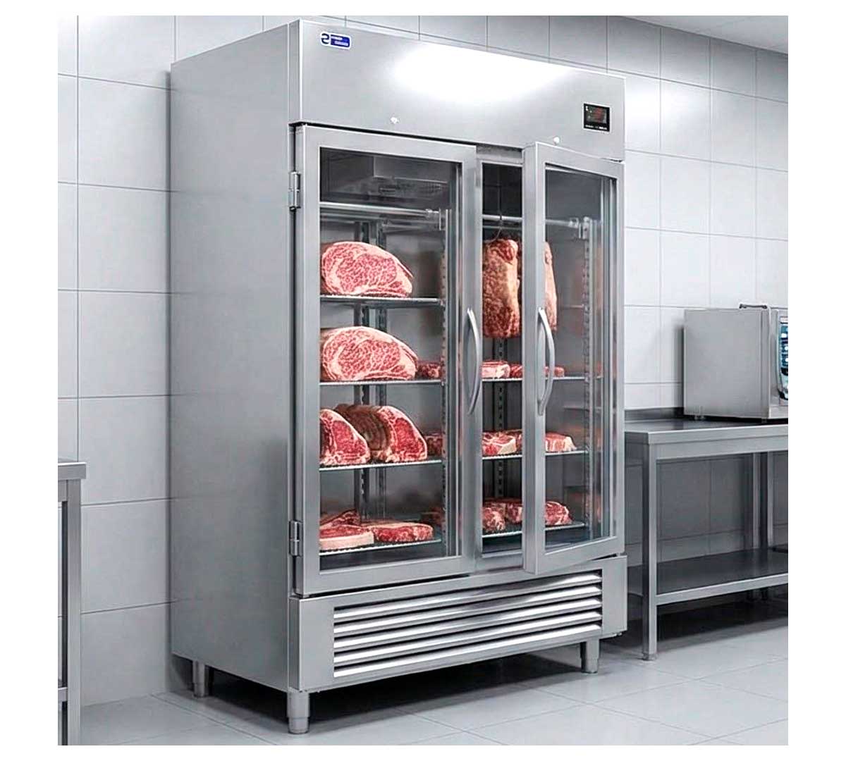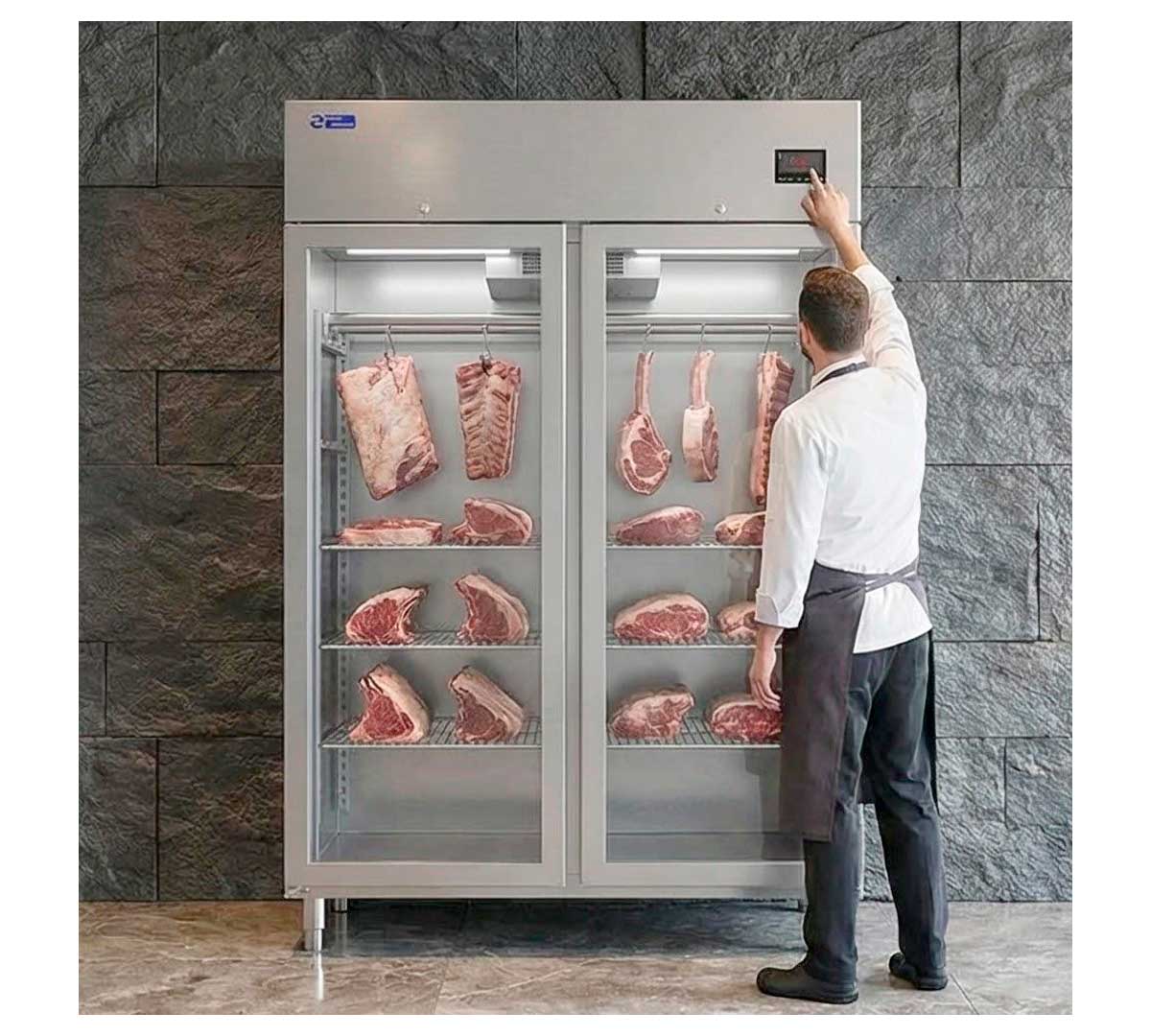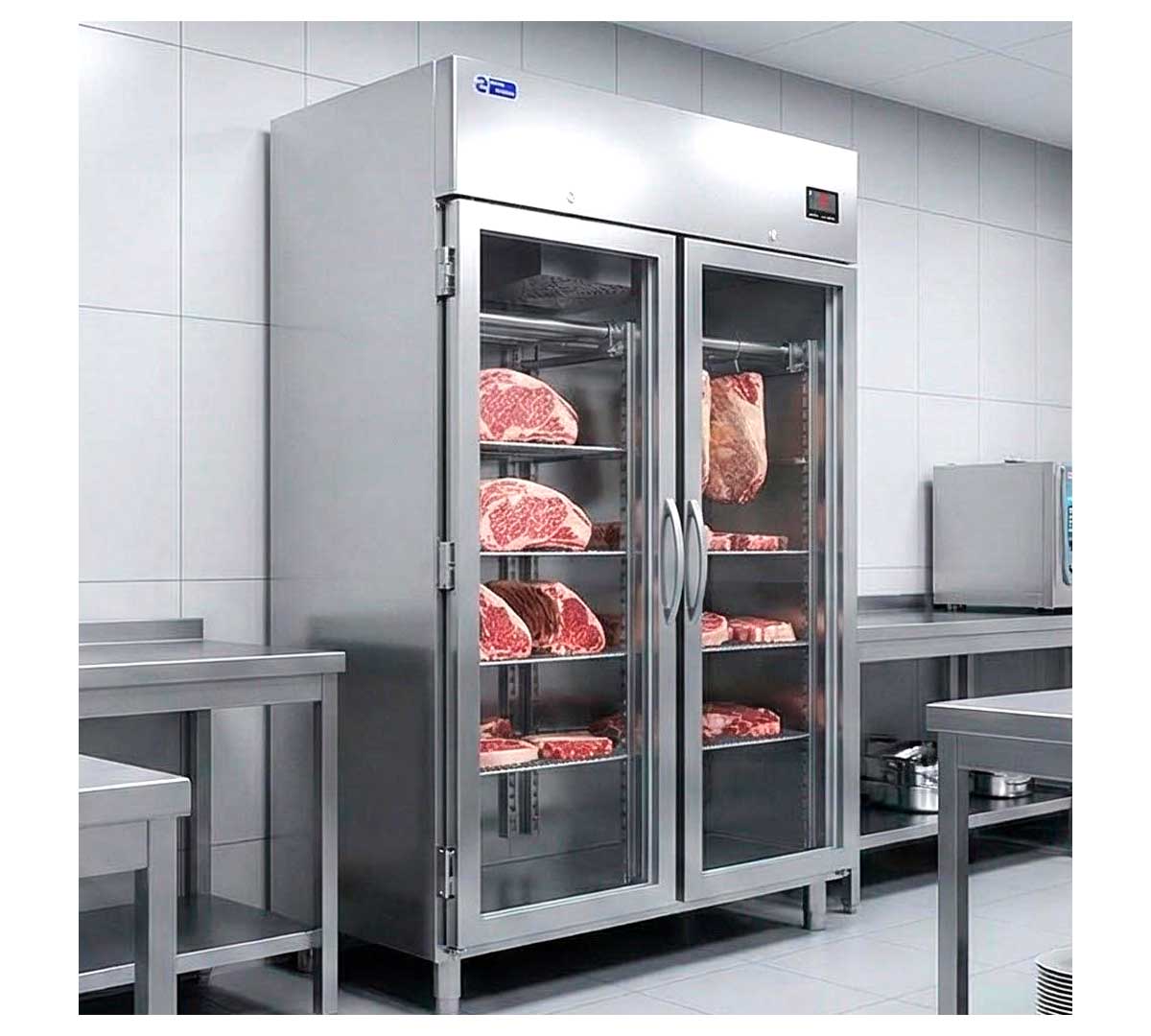 Armario especial para la maduración de carne en seco. Controla temperatura y humedad en un espacio higiénico. Tiene una capacidad 920 litros. Es ideal para restaurantes especializados.