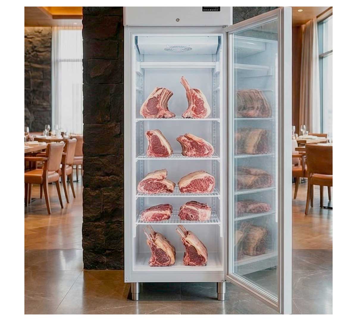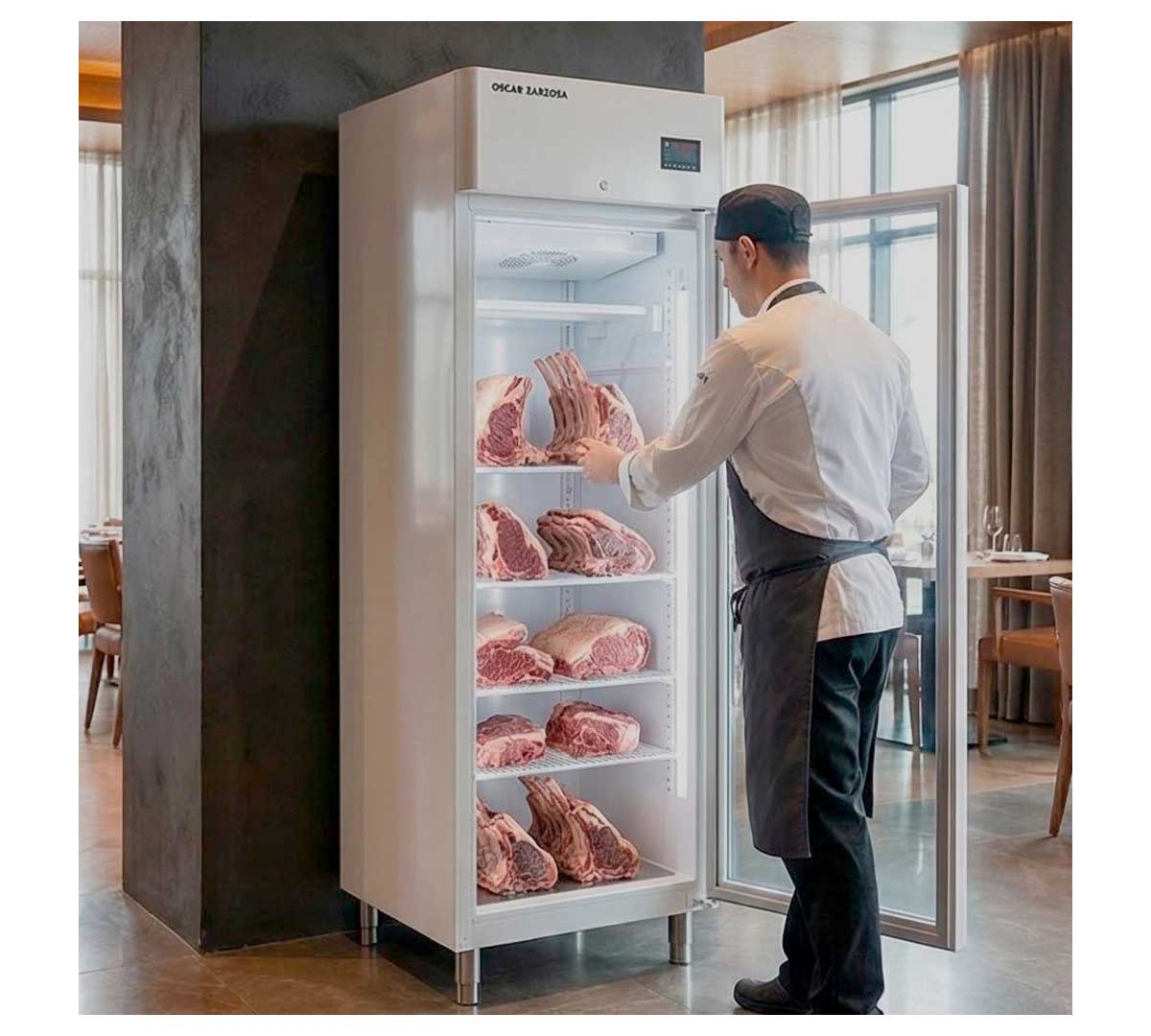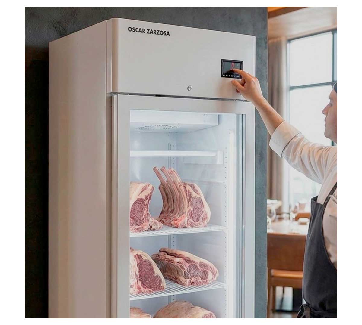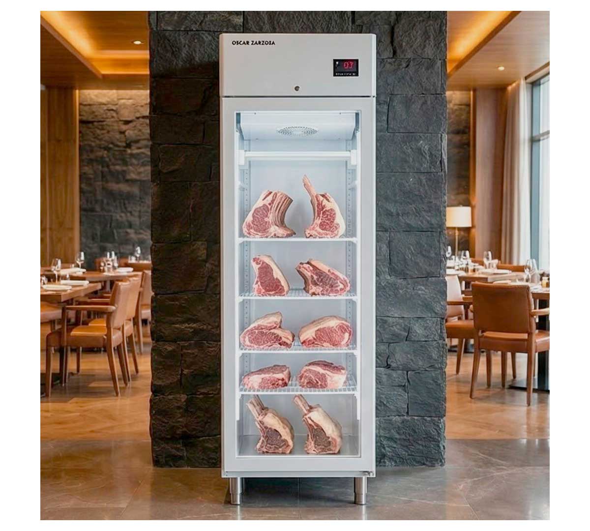 Armario especial para la maduración de carne en seco. Controla temperatura y humedad en un espacio higiénico. Tiene una capacidad 700 litros. Es ideal para restaurantes especializados.