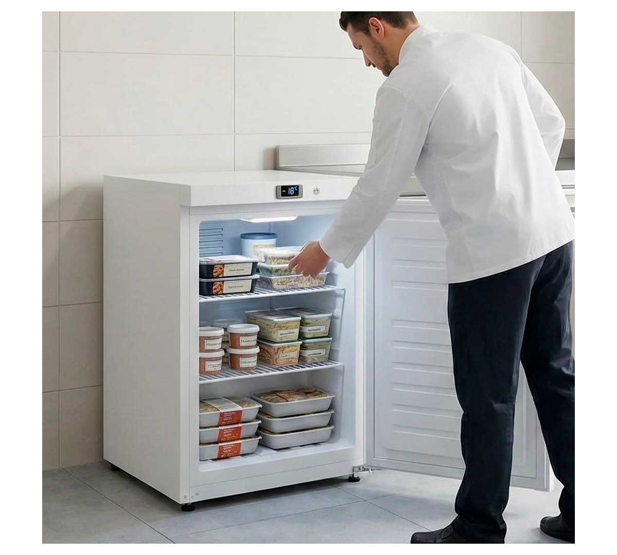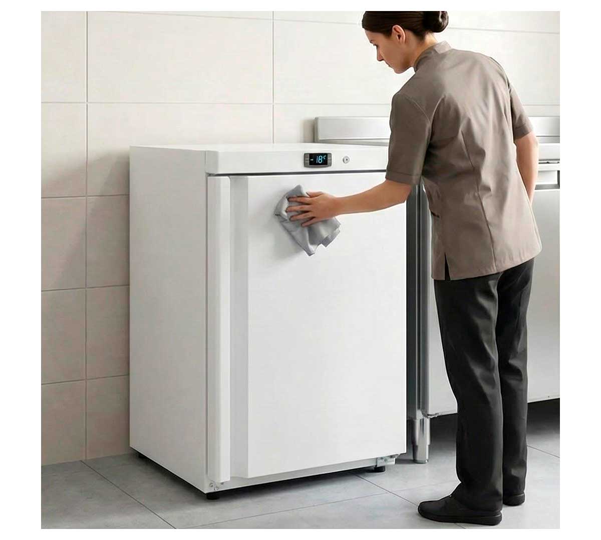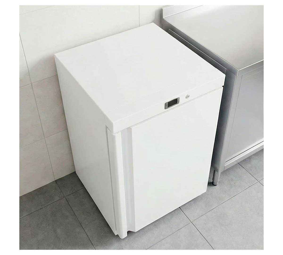 El Armario Congelador Snack AC200L de ClimaHosteleria está fabricado exteriormente en acero lacado en color blanco.