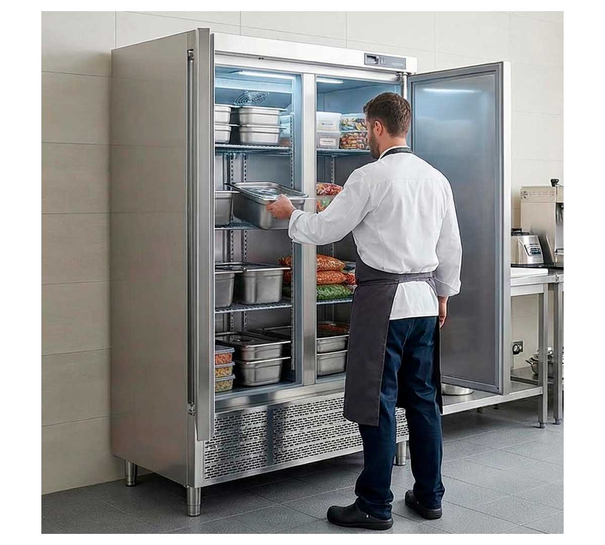 El Armario Congelador Nacional AC12002 de Corequip tiene el interior y el exterior de acero inoxidable. El respaldo es galvanizado. Con control electrónico y digital de la temperatura de desescarche. Está diseñado para conservar verduras, productos lácteos, etc.