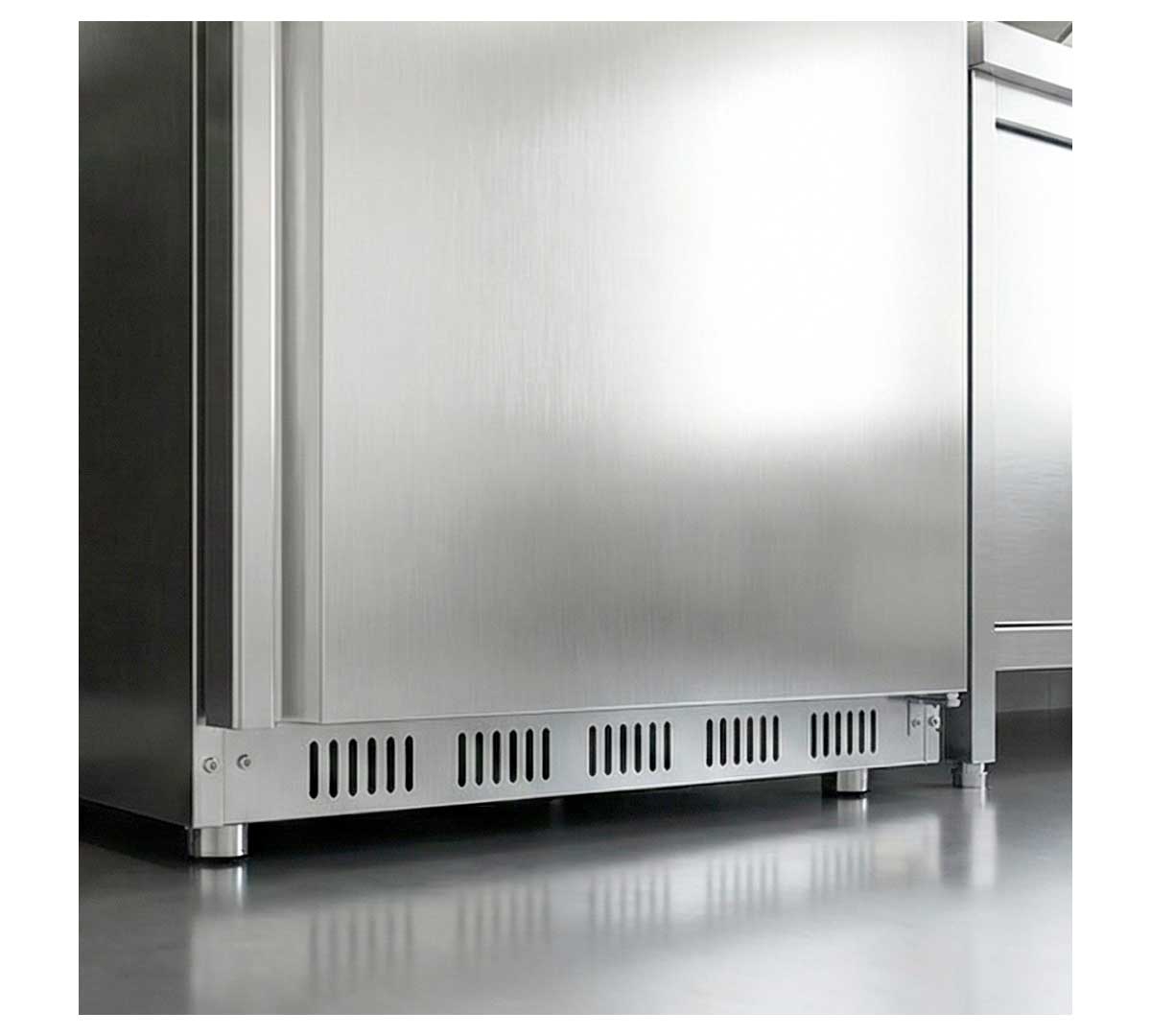 Este modelo tiene una capacidad de 555 litros. Incluye 6 estantes fijos. Está disponible en dos modelos con acabado en chapa epoxi blanco o en acero inoxidable.