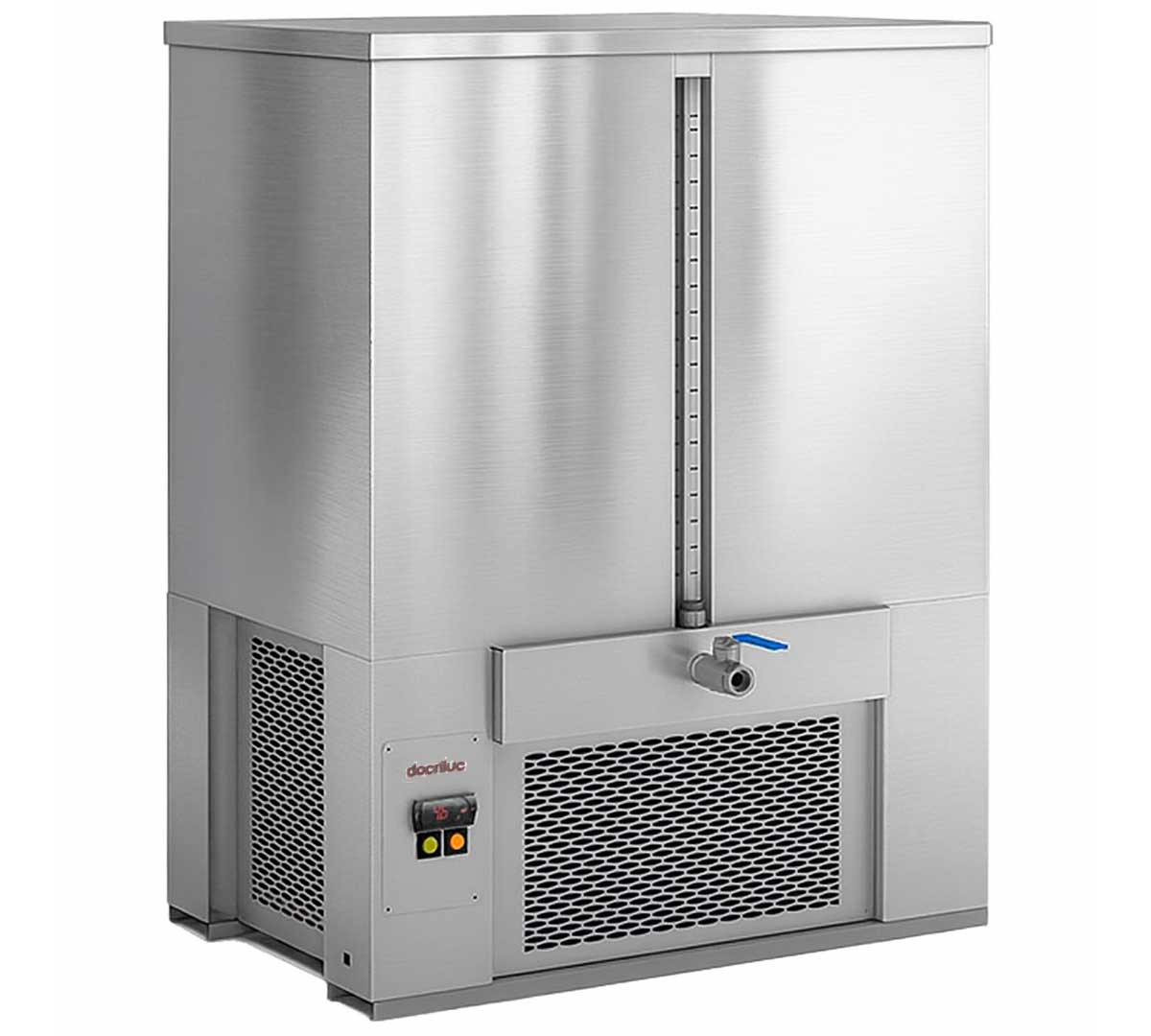 El Enfriador de Agua EAPI-175V de Docriluc permite una temperatura de trabajo de 1 a 3ºC. Ofrece un control térmico preciso y fiable, ideal para panaderías, pastelerías y entornos profesionales donde la temperatura del agua es clave en la calidad del producto final. Con un diseño vertical. Está fabricado en acero inoxidable.