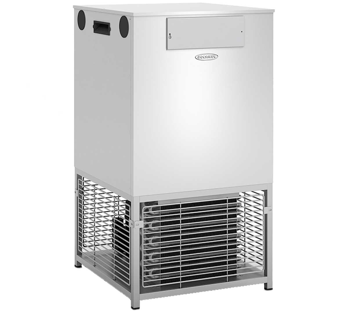 Enfriador de líquidos vertical indicado para agua o cerveza. Fabricado en acero inoxidable en el exterior. La cuba interior es de fibra de poliéster. Con bomba agitador interior y control electrónico de espesor de hielo.