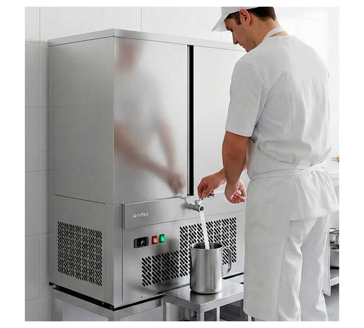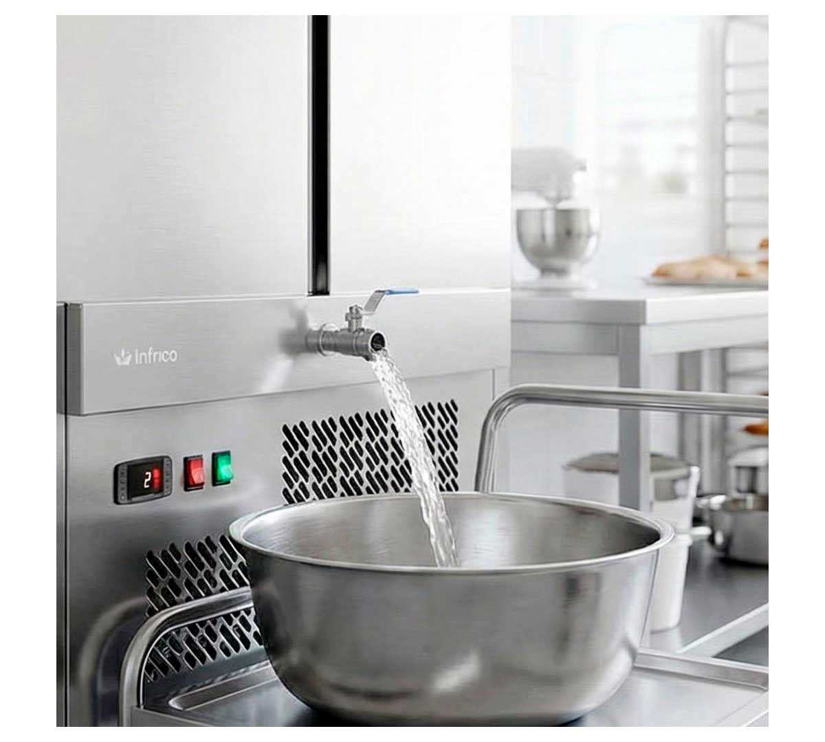 El Tanque Enfriador de Agua TA 180 II de Infrico está especialmente diseñado para panadería y pastelería. Tiene agitador de agua interno. El sistema de evaporación es por serpentín sumergible.