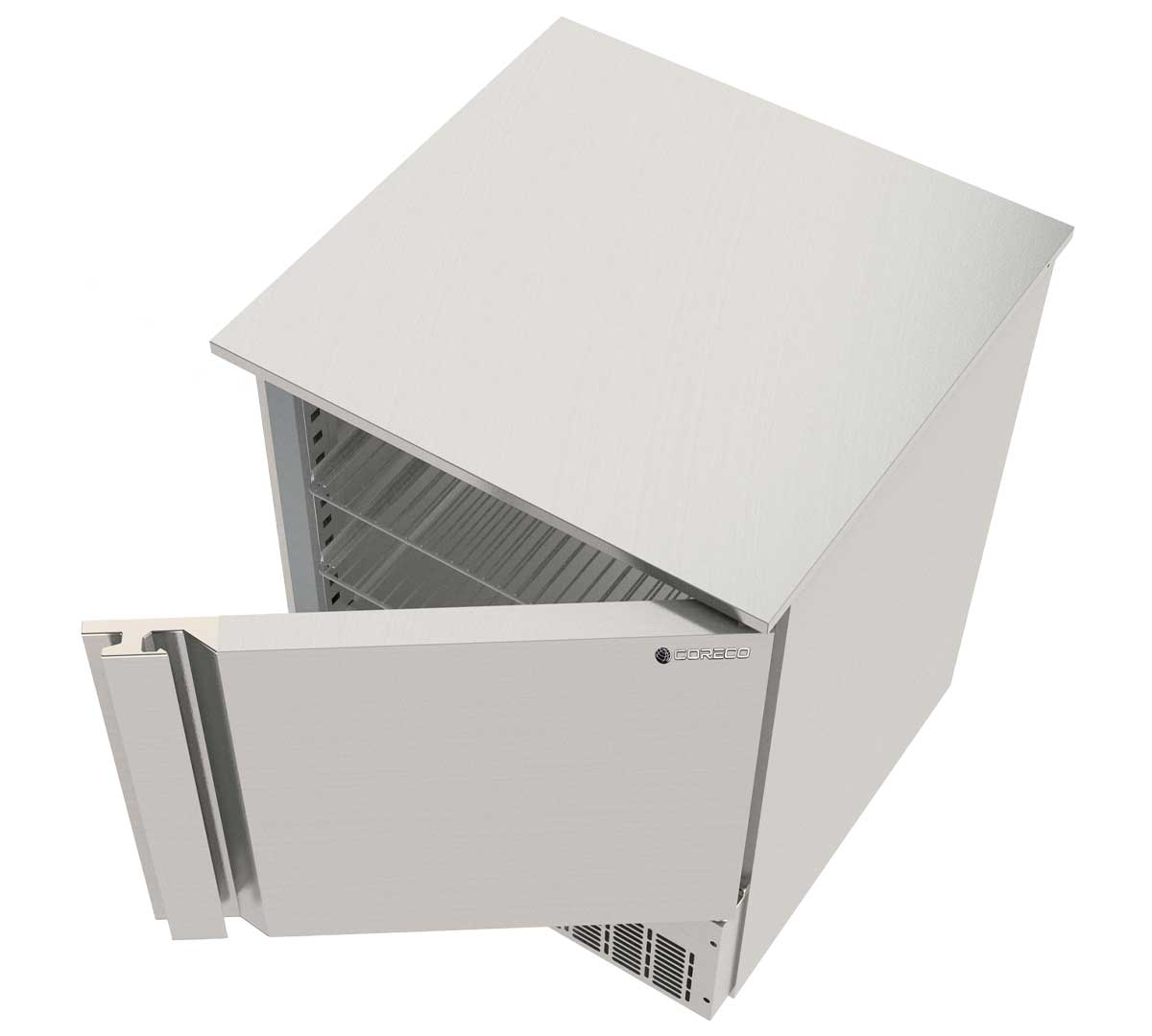 Enfriador y escarchador de copas fabricado en acero inoxidable con puerta opaca. Es ideal para bares y pubs para servir cócteles y bebidas frías. Está fabricado en acero inoxidable. Dispone de sistema de cierre automático, estantes regulables en altura y evaporador placa fría. Incluye 1 estante.