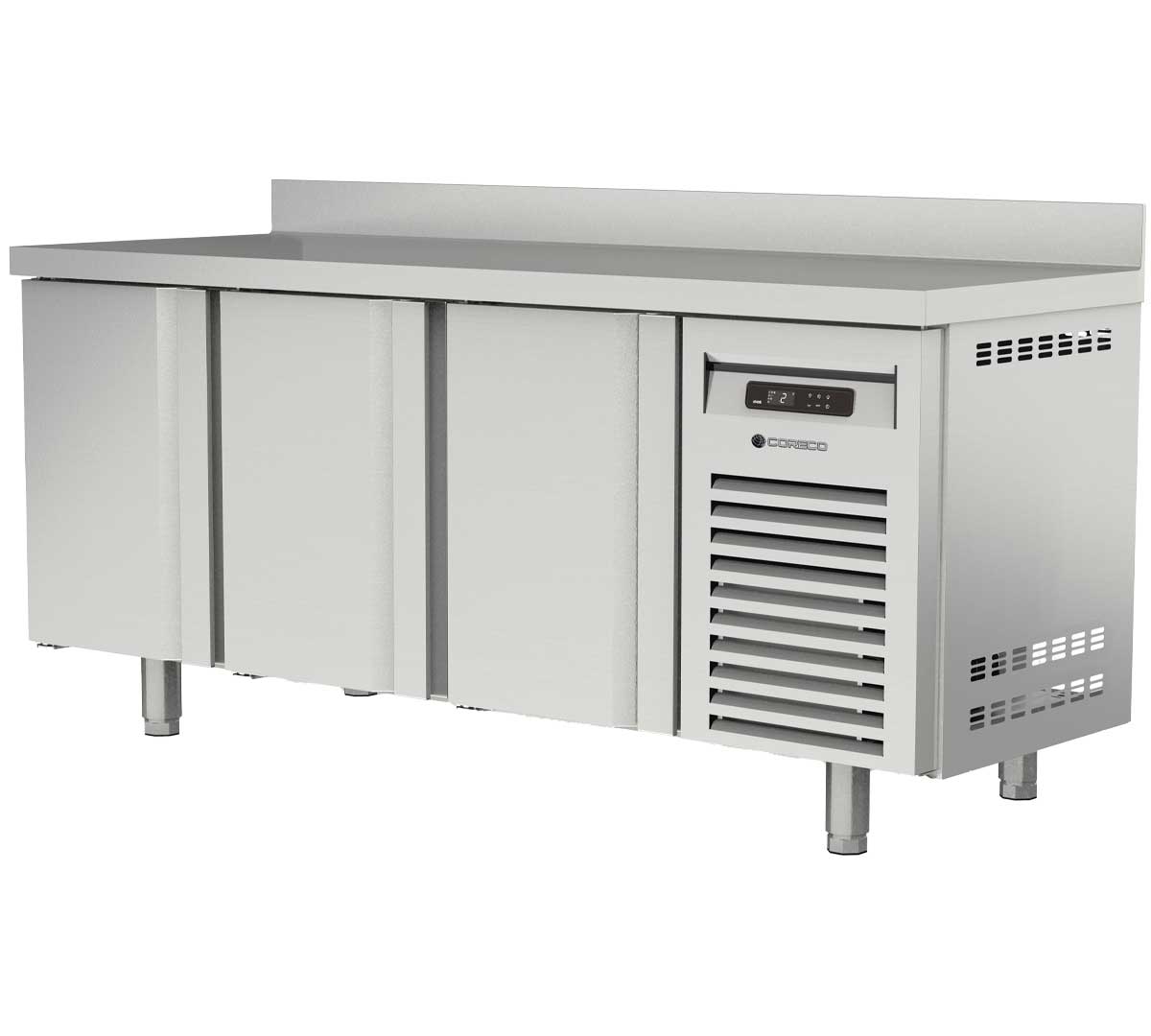 La Mesa Fría 700 GN 1/1 MCG Congelados de Coreco está fabricada en acero inoxidable con puertas de apertura reversible. Está disponible con 2 o 3 puertas. Es una solución avanzada para la conservación de productos congelados, diseñada para aportar eficiencia y robustez en cualquier entorno profesional.