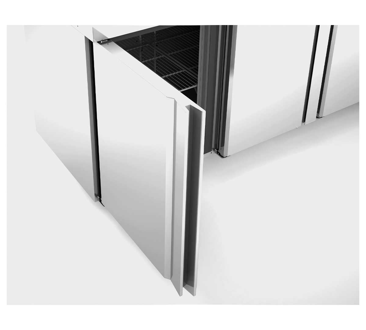 Sus aristas redondeadas y fondo embutido facilitan la limpieza y evitan acumulaciones de suciedad, mientras que el aislamiento de poliuretano inyectado de alta densidad asegura una óptima eficiencia térmica y un consumo energético reducido.
