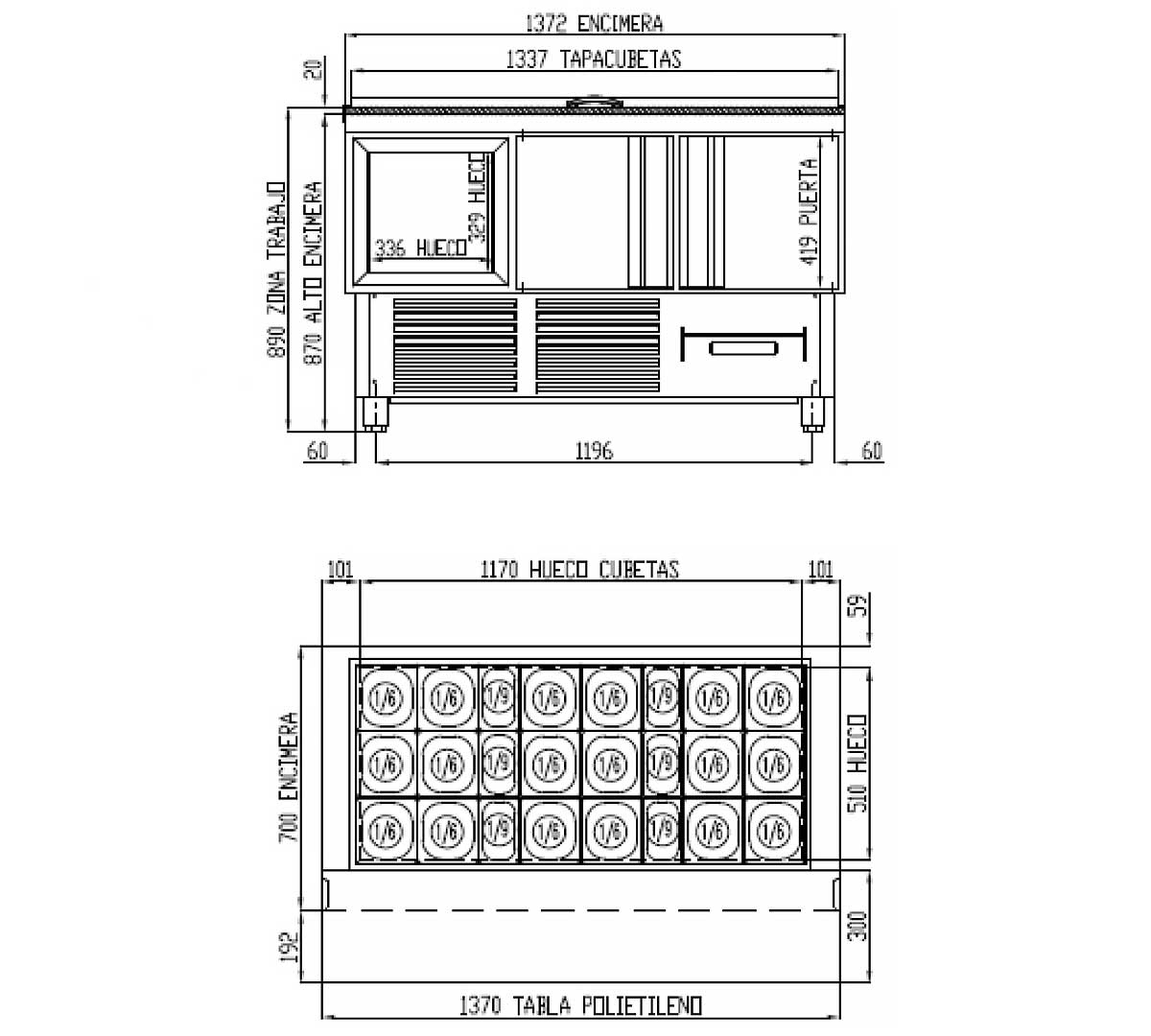 | Capacidad cubetas | 18GN 1/6 + 6 GN 1/9 | |