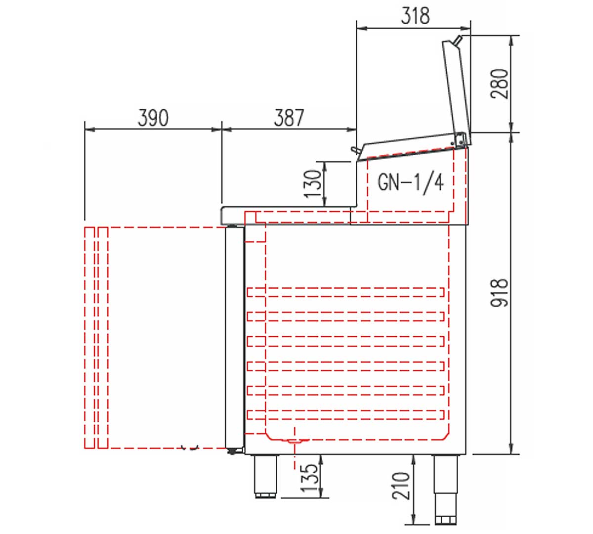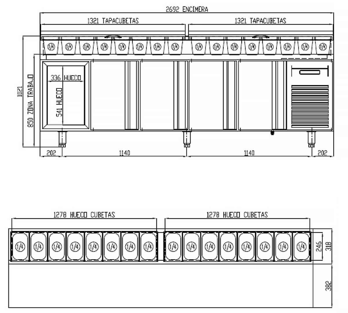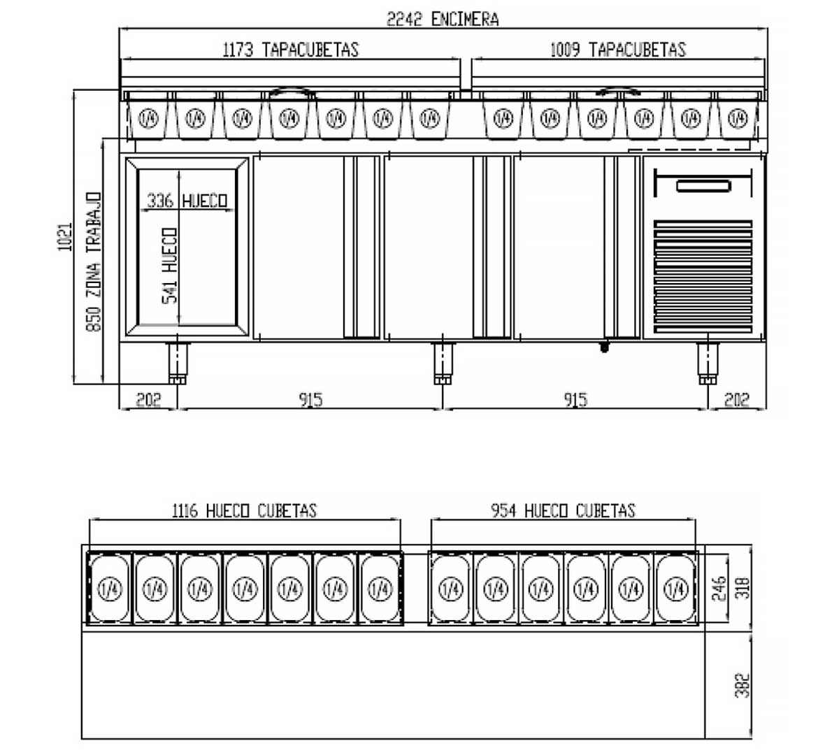 Las cubetas gastronorm y los perfiles divisorios no están incluidos.