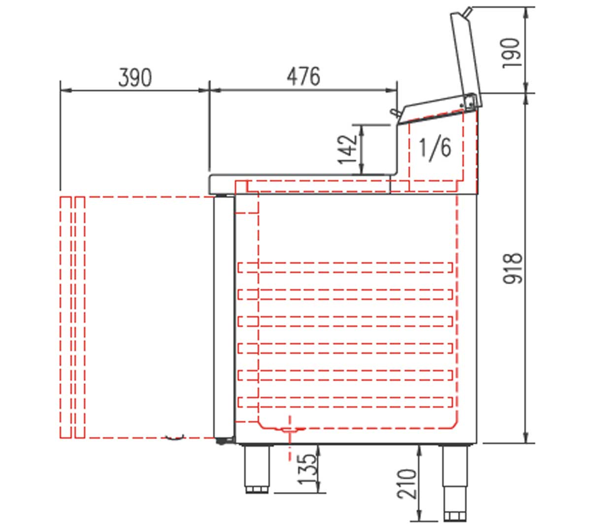 Capacidad 13 cubetas GN 1/6