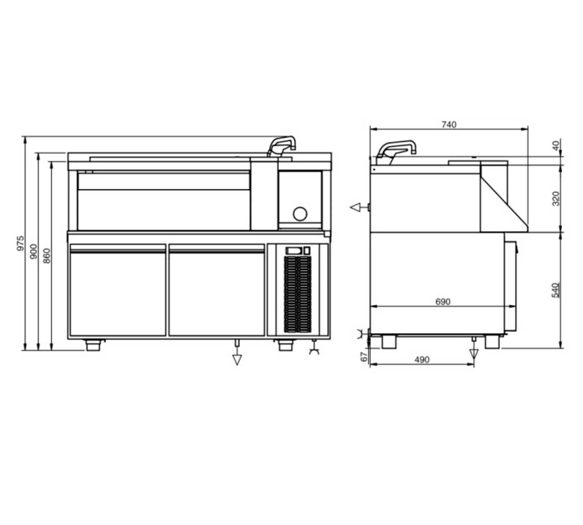 Mesa fría para preparación de cócteles fabricada en acero inox y con expositor de ingredientes integrado. Incorpora fregadero son desagüe y grifo monomando. Capacidad para 7 o 10 cubetas GN 1/9 de hasta 100 mm de profundidad, no incluidas.