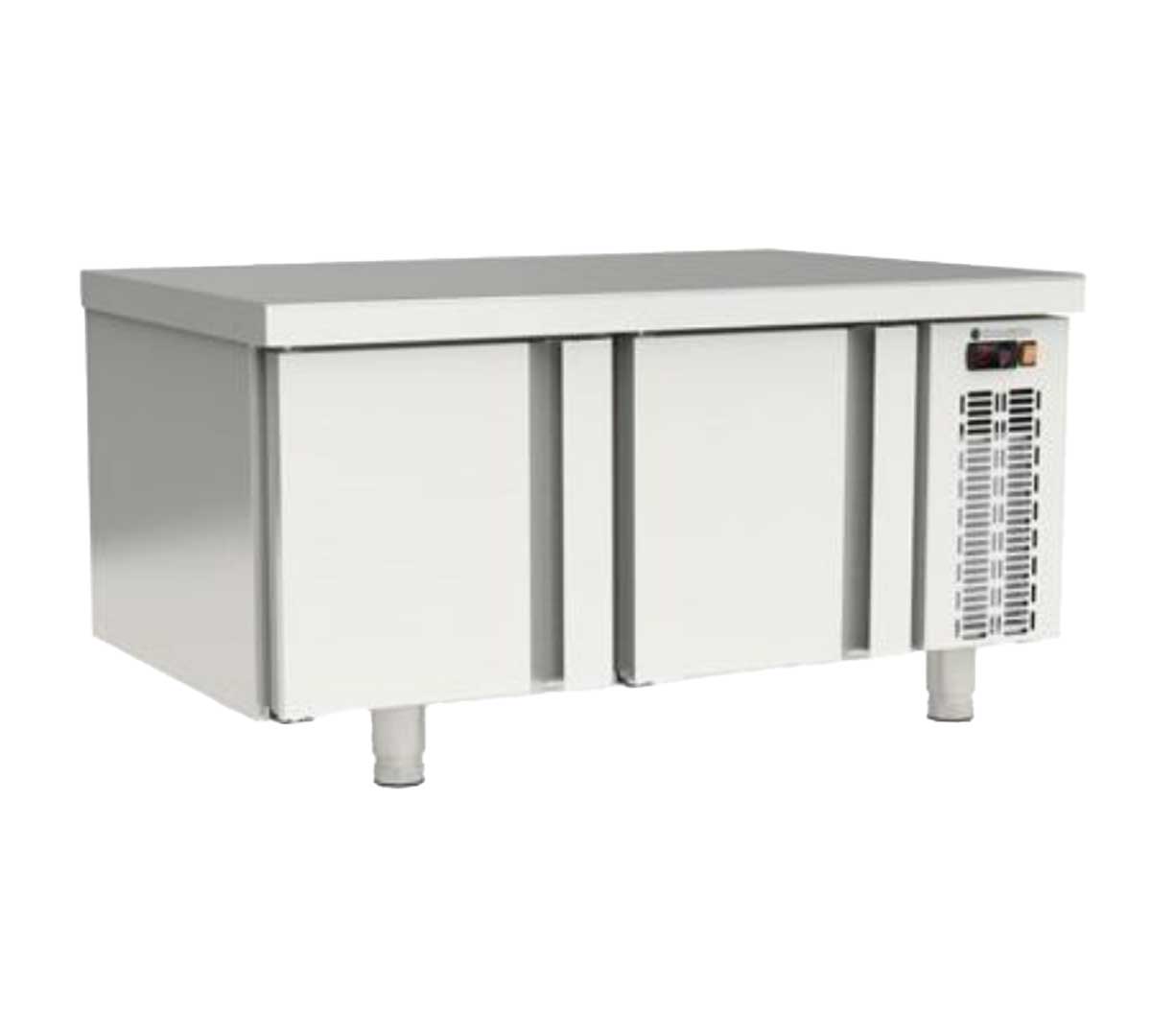 Mesa refrigerada baja con altura de 60 cm. Unidad condensadora ventilada y control digital de temperatura. Tiene una eficiente gestión del consumo de energía. La temperatura es de -2 a +8 ºC. Evaporador central, sistema tiro forzado, con recubrimiento epoxi anticorrosión. Incluye estantes parrilla GN 1/1.