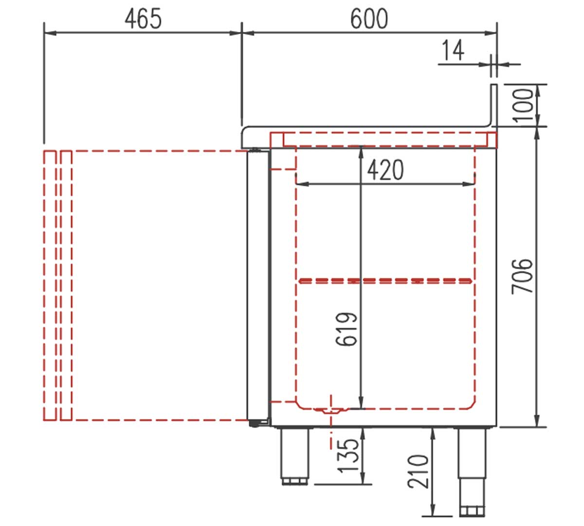 Coreco Mesa Refrigerada Gama 600 Snack Pre-Instalación MRSPV-170 - Capacidad 380 litros | ||
