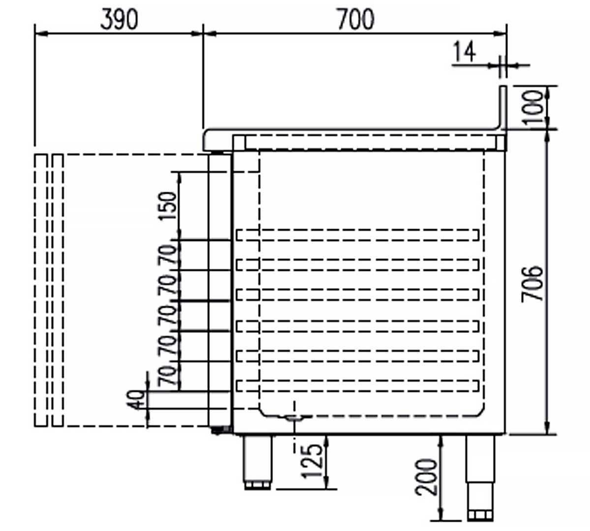 Esta mesa refrigerada, también conocida como mesa fría industrial, destaca por su robustez y fiabilidad, integrando materiales de alta calidad y una construcción pensada para el uso intensivo y prolongado.