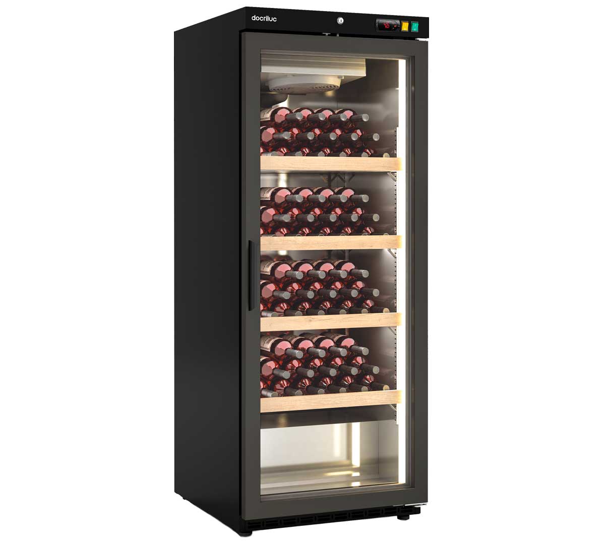 Su estructura robusta y elegante en acero plastificado negro, junto con su tecnología de refrigeración ventilada y control electrónico de temperatura, garantizan una conservación óptima de cada botella.