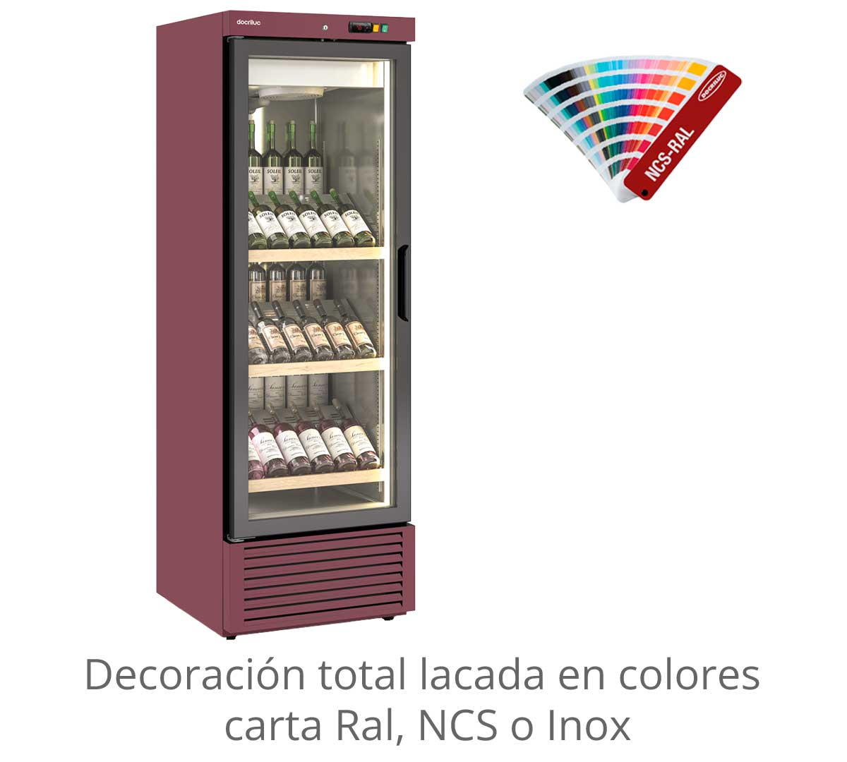 Expositor de vinos perfecto para la conservación y exposición de vinos en restaurantes, hoteles, bares o bodegas que buscan una vinoteca de gran capacidad y control de temperatura preciso. Permite almacenar y presentar vinos tintos, blancos, rosados y espumosos en condiciones ideales, adaptándose a diferentes necesidades de servicio y conservación.