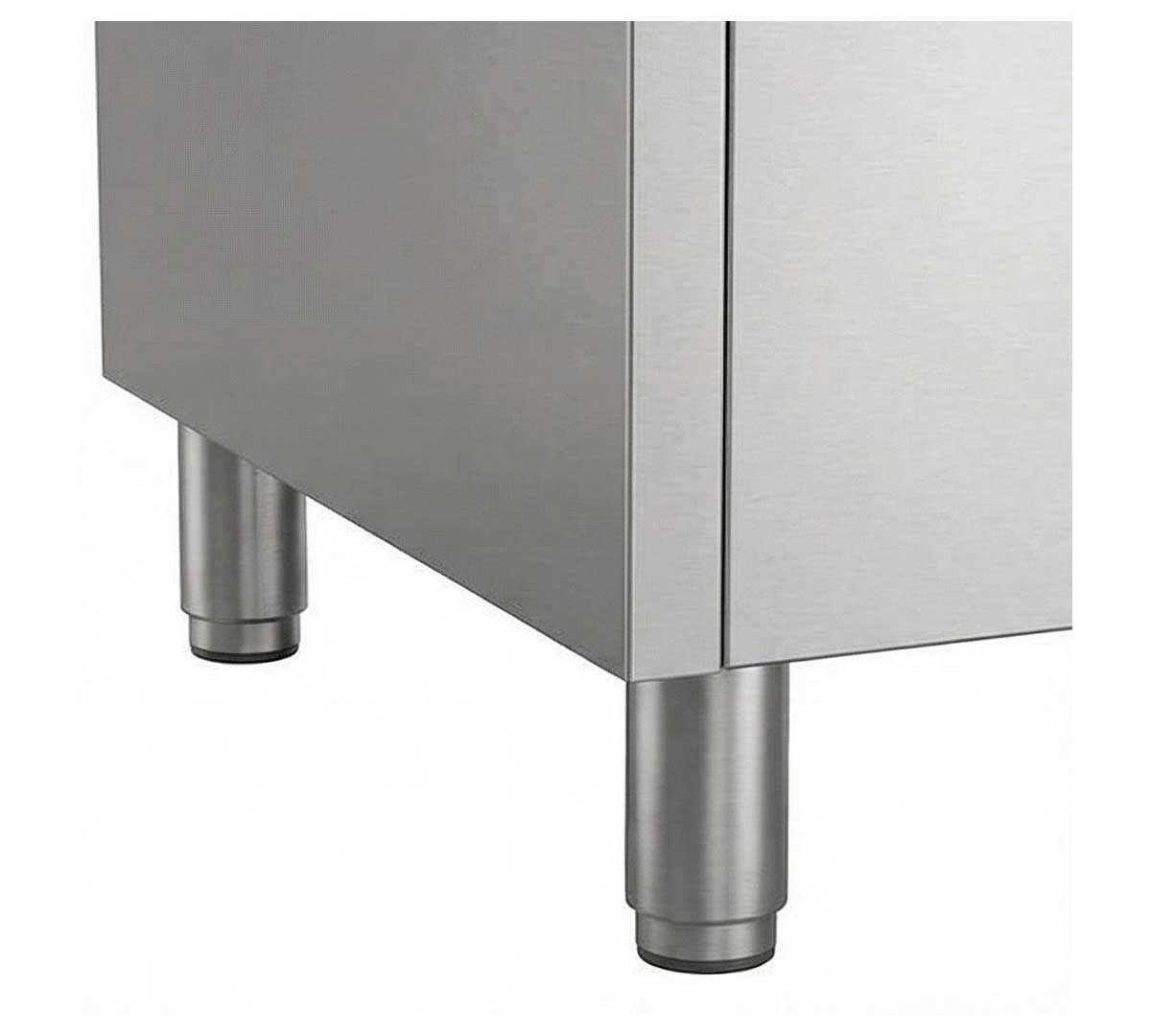 Almacén para hielo para necesidades moderadas de almacenamiento. Con alta capacidad de aislamiento para conservar el hielo por más tiempo. Las patas son regulables en altura.