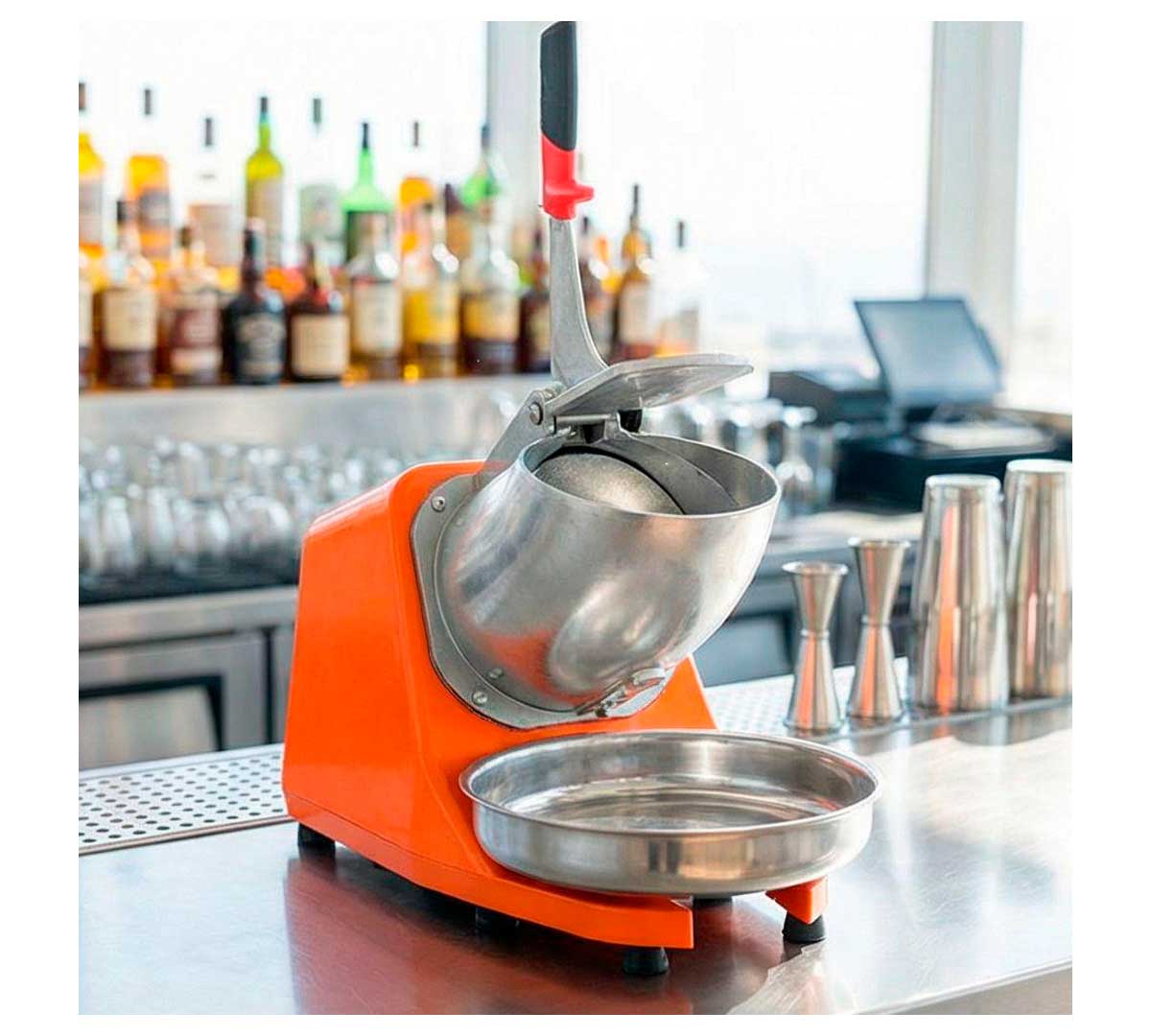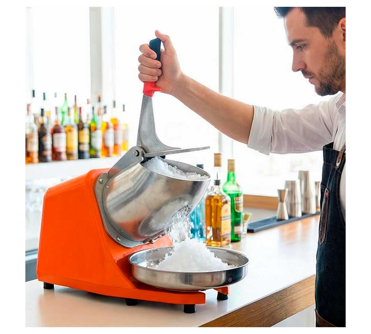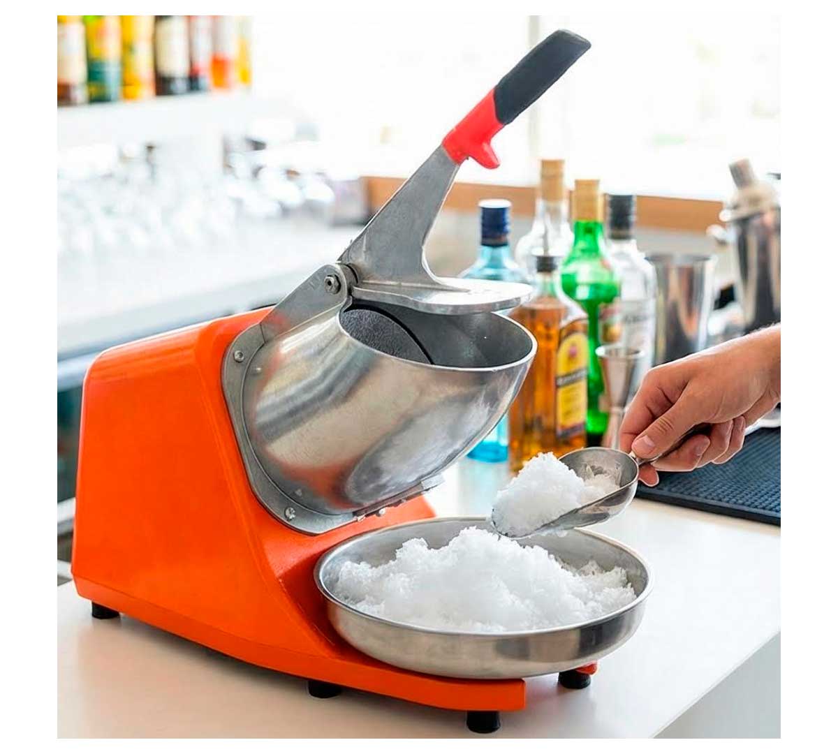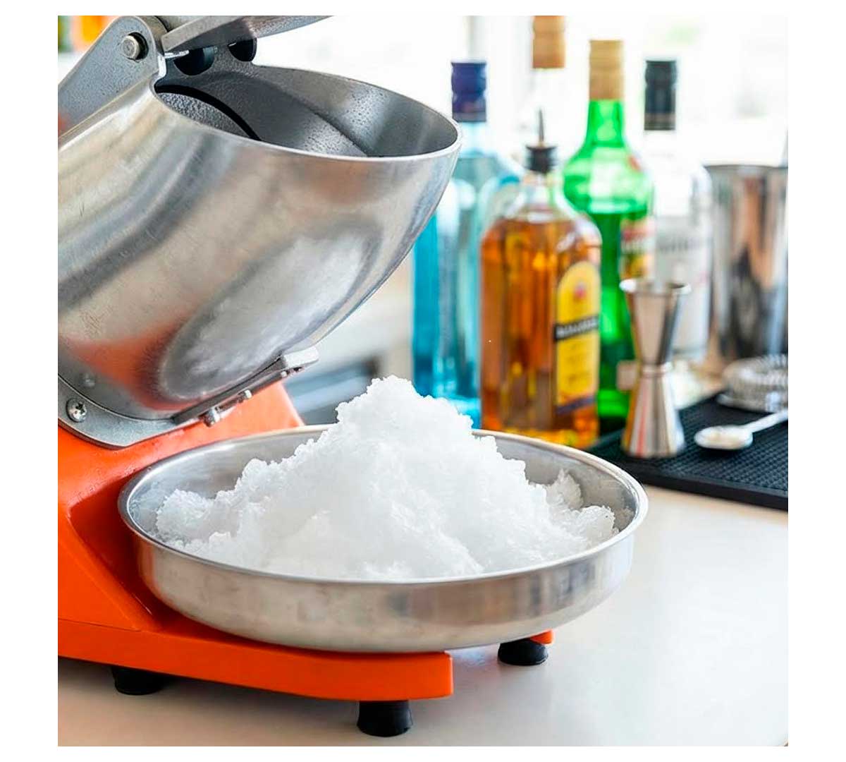 Máquina para picar hielo a punto de nieve. De diseño seguro e higiénico. Todas las partes de la máquina que tienen contacto con el hielo están fabricadas en aleación de aluminio y acero inoxidable. Dispone de micro de seguridad en la palanca.