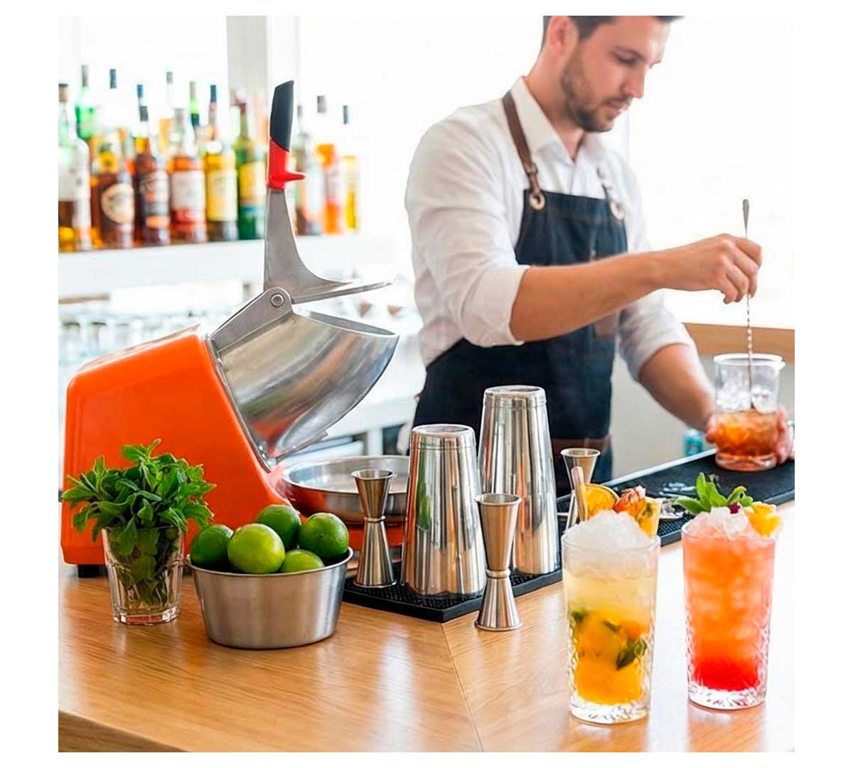 Picadora de hielo PH-65 de Irimar, con bandeja para recoger el hielo. Recomendada en negocios de hostelería en la preparación de cócteles.
