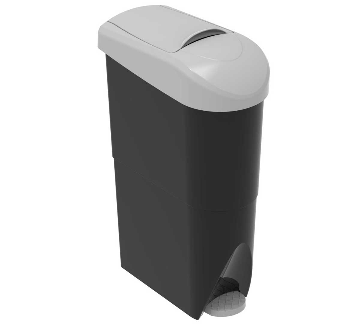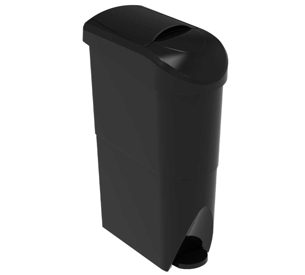 Papelera sanitaria en color blanco o negro. Está fabricada en polipropileno PP con carga mineral para una mayor estabilidad y rigidez. Tiene una capacidad de 15 litros y se recomienda para áreas de alta frecuencia de paso.