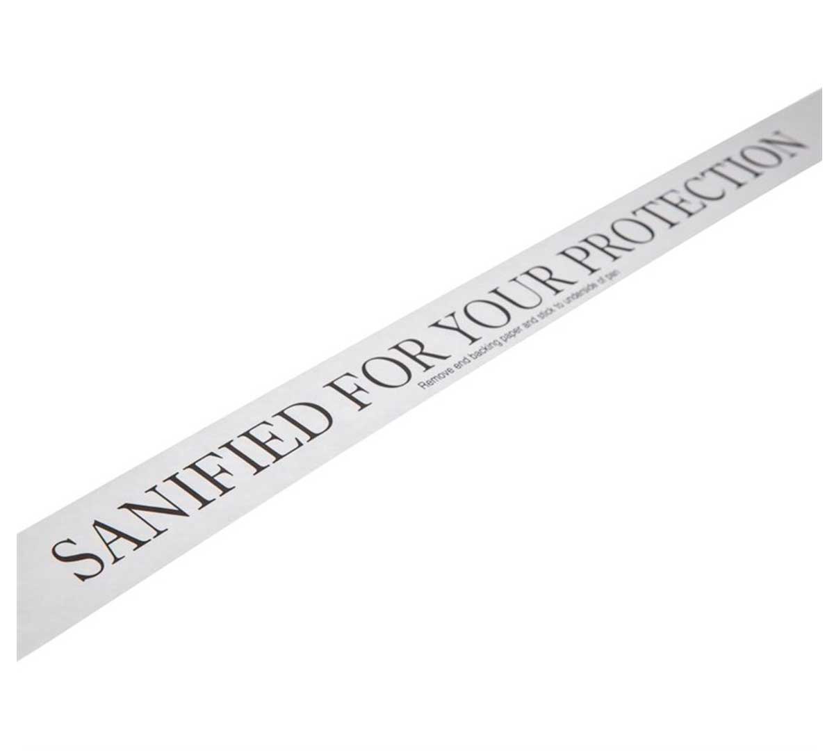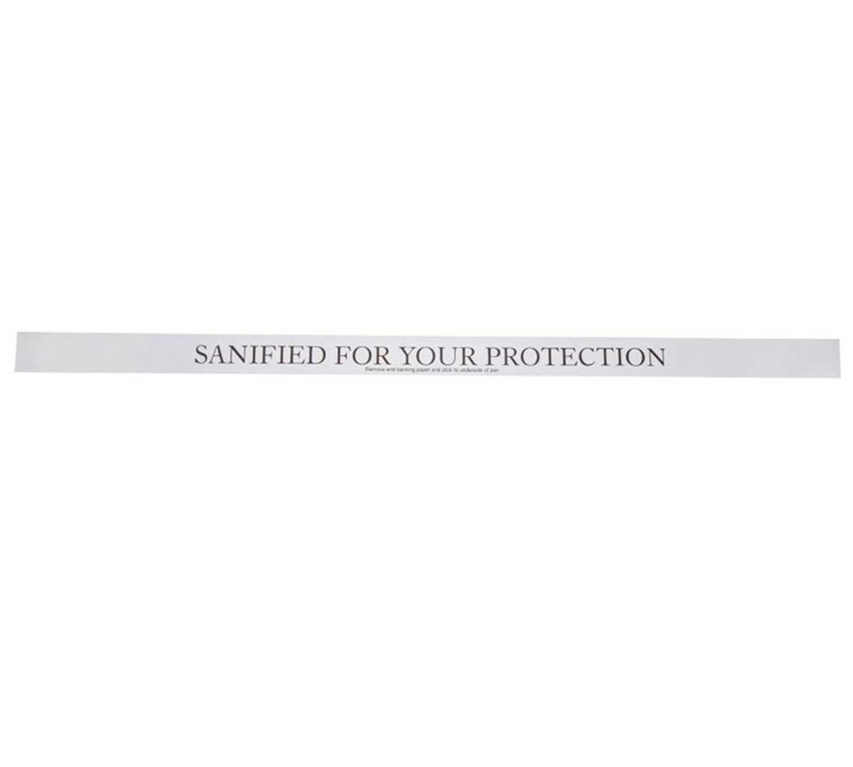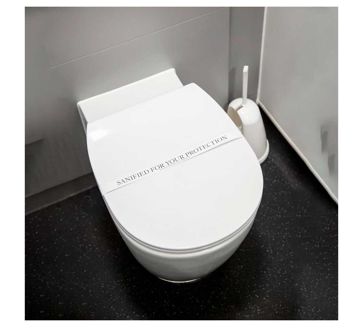 Pegatinas sanitarias autoadhesivas para baños. Presentadas en pack de 250 unidades. Diseñadas para informar al huésped de la limpieza reciente del inodoro y reforzar la percepción de higiene en establecimientos de hostelería.