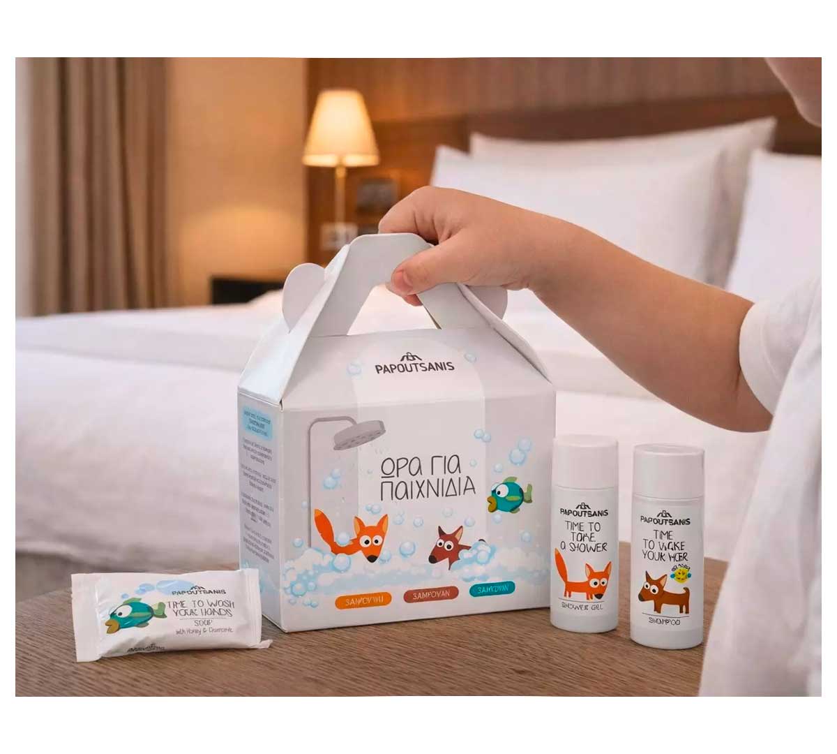 Este set de higiene infantil está especialmente indicado para equipar baños en alojamientos que reciben familias con niños, aportando una solución de acogida diferenciada para los más pequeños.