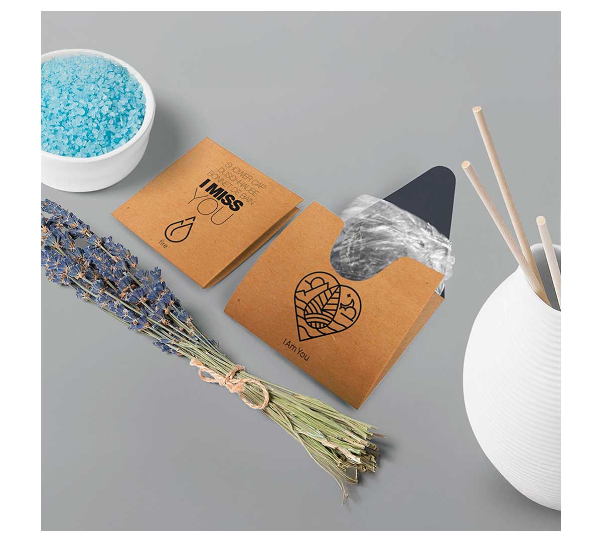 Gorro de ducha en empaque de papel kraft reciclable. Forma parte de la Línea Ecológica Botanika para los huéspedes más exigentes. Se vende en cajas de 100 unidades.