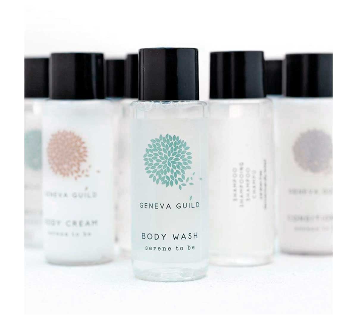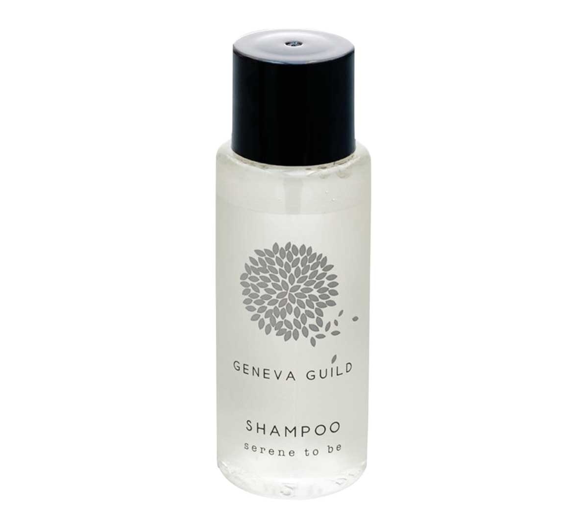 El Champú Geneva Guild pertenece a la gama Geneva Guild de amenities hoteleros y se presenta en botellas individuales de 30 ml, con diseño neutro y contemporáneo, pensado para hoteles, pensiones y hostales con alta rotación.