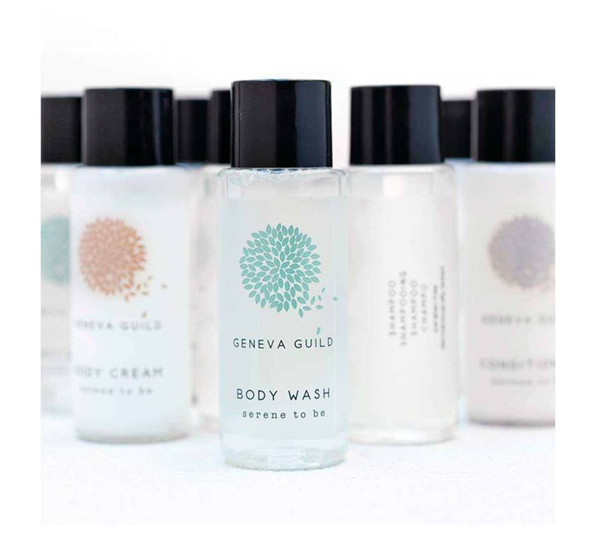 El Gel de Baño Geneva Guild 30 ml pertenece a la gama Geneva Guild de amenities hoteleros y se presenta en botellas individuales de 30 ml, con diseño neutro y contemporáneo, ideal para hoteles, pensiones y bed and breakfast.