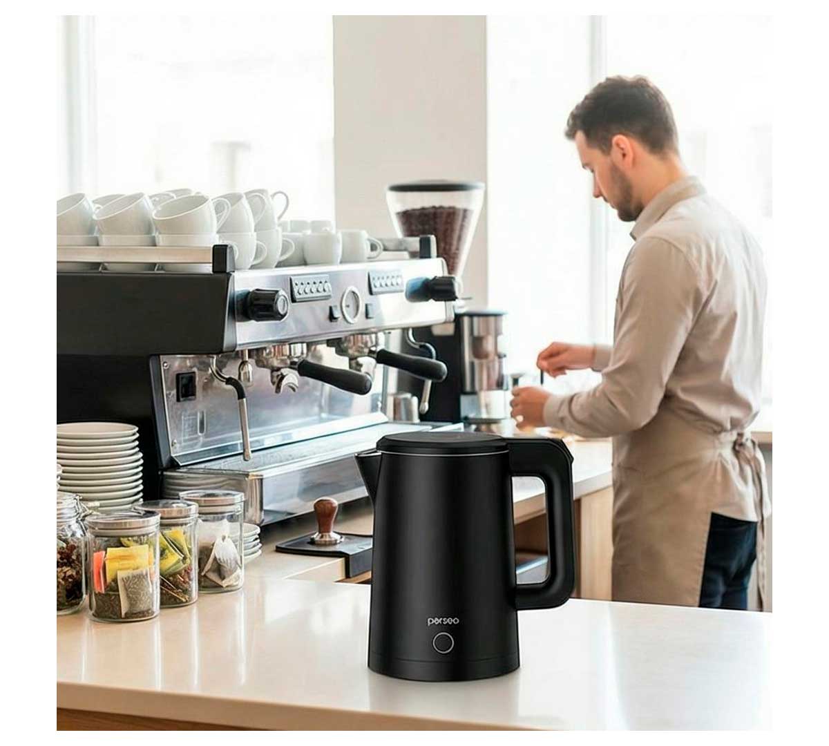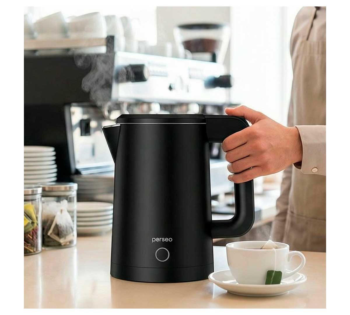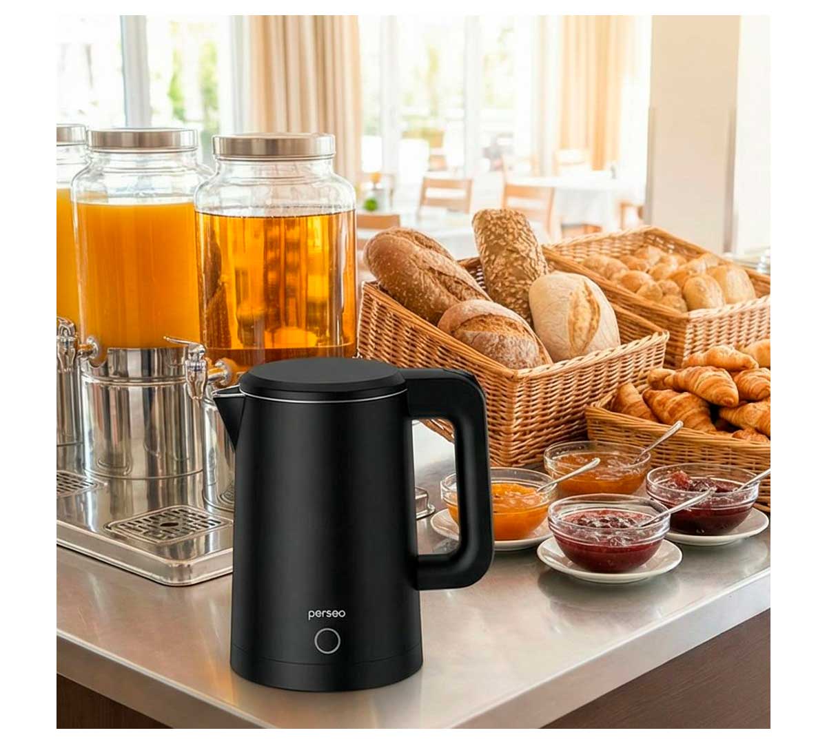 El Hervidor Serene de Perseo by BTV recomendado para las habitaciones de hoteles. Está fabricado en acero inoxidable AISI 304 pintado en negro.