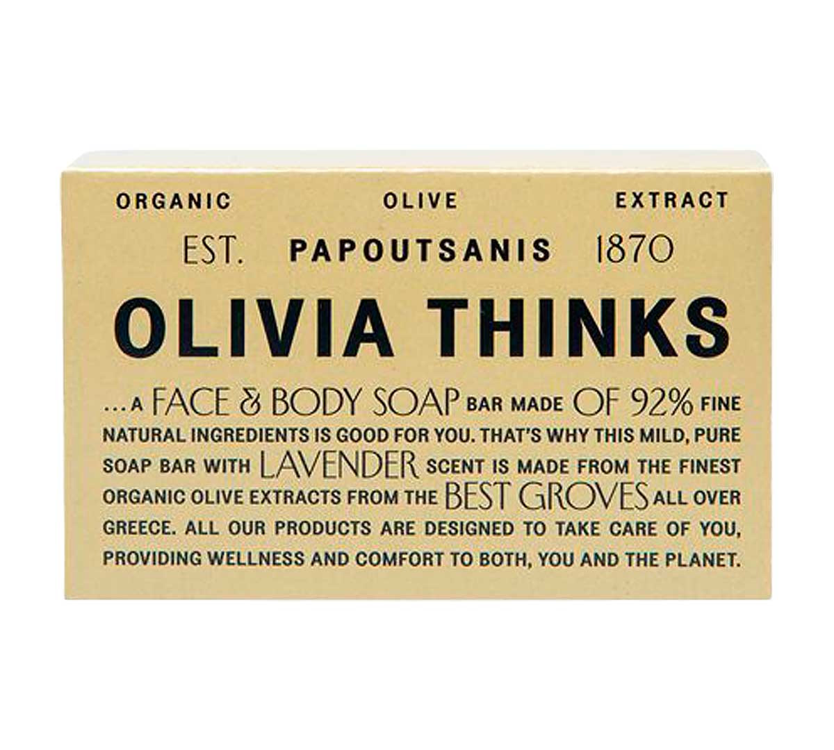Este jabón sólido combina aceite de oliva orgánico con un aroma relajante a lavanda para limpiar la piel manteniendo su equilibrio natural y una agradable sensación de bienestar.