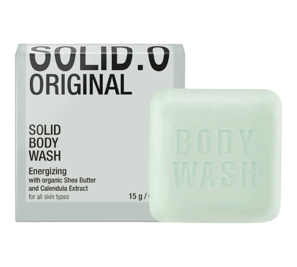 Gel de ducha sólido profesional de 15 g sin plástico, con ingredientes orgánicos naturales como manteca de karité y caléndula, diseñado para higiene corporal sostenible en hoteles.