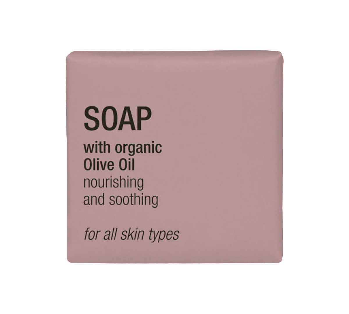Jabón sólido profesional de 10 g sin plástico, formulado con aceite de oliva orgánico, diseñado para higiene de manos sostenible en hoteles con alto volumen de rotación.