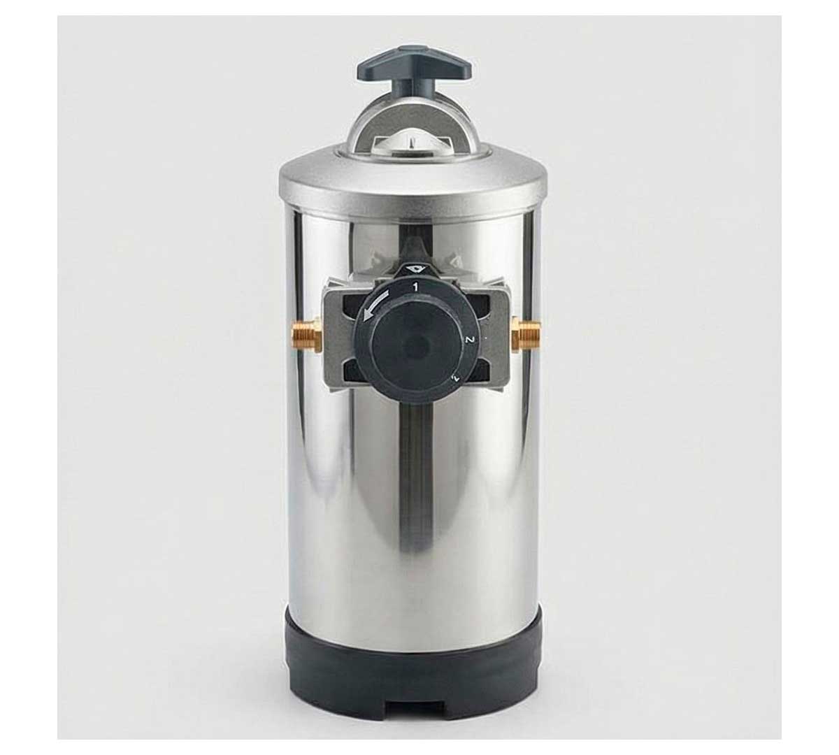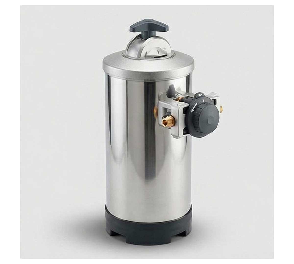 Descalcificador manual fabricado en acero inoxidable con funcionamiento regulado por by-pass, diseñado para proporcionar agua descalcificada. Incluye la recarga de resina.
