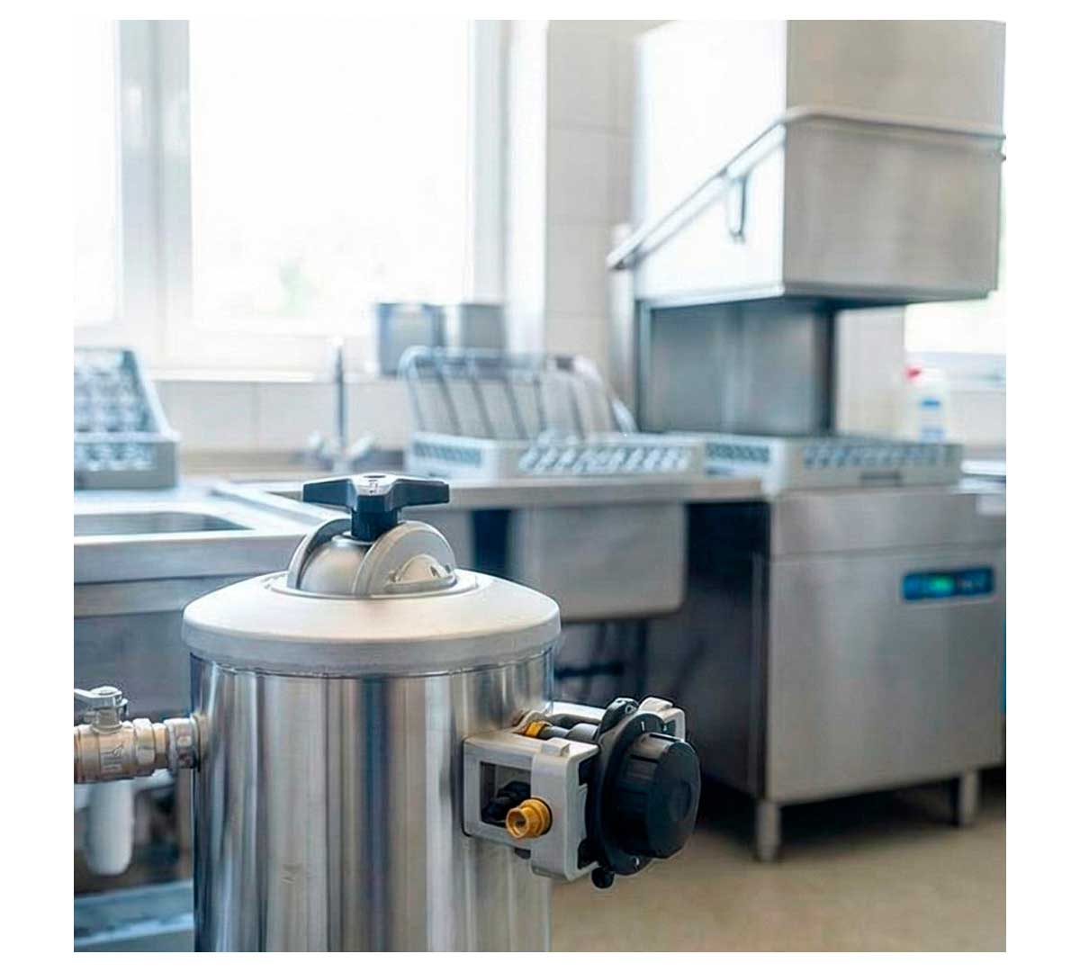 El Descalcificador By-Pass de GEV está diseñado para el descalcificado del agua utilizada para alimentar máquinas. Ideal para máquinas de hielo, lavavajillas, hornos, etc.