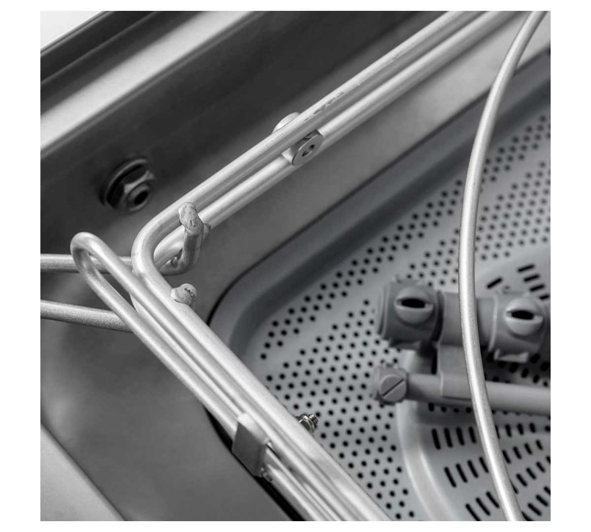 Su diseño con acceso frontal total a los componentes facilita tanto el mantenimiento como la limpieza diaria, aportando comodidad y eficiencia en el trabajo diario. Además, incorpora microinterruptor de seguridad en la puerta y cuba estampada, asegurando una higiene óptima y un uso seguro. Como lavadora de vajillas profesional, responde a las necesidades de alta producción y fiabilidad.