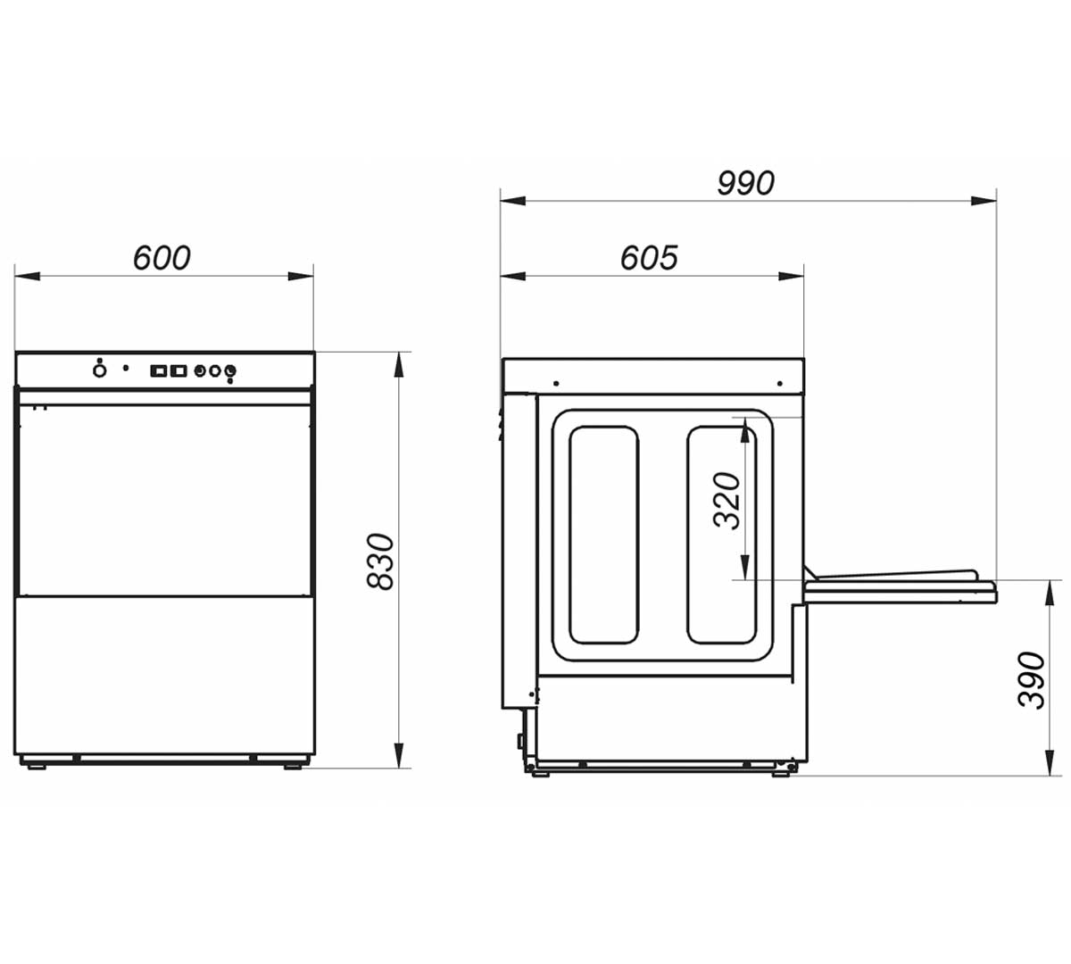 Lavavajillas de apertura frontal con control electromecánico. Tiene 1 ciclo de lavado de 120 segundos. Con termostatos de seguridad para tanque y calderín, así como válvula antirretorno, que garantizan unas condiciones de trabajo fiables y seguras. Incluye 1 cesta para platos, 1 cesta general y 1 cestillo para cubiertos.
