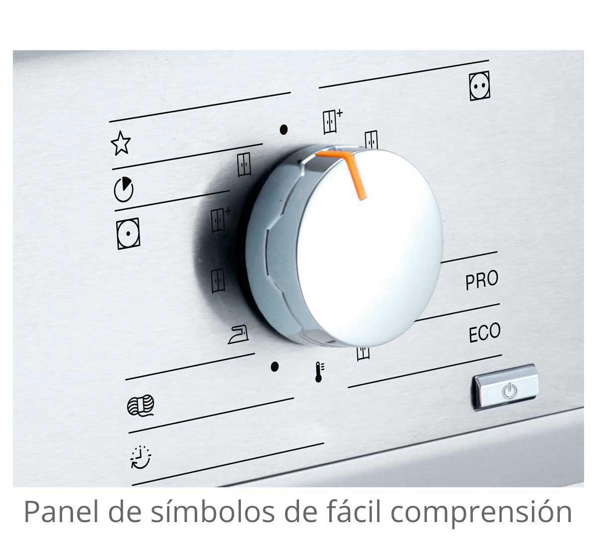 Secadora con bomba de calor o de condensación que consume hasta un 50% menos que las secadoras de evacuación. Durante el secado, el agua condesada que se produce es bombeada a través de la manguera de desagüe a la parte trasera. Con pantalla touch y selector de programas manual. Se suministra con cable de conexión con conector. Es necesario un desagüe.