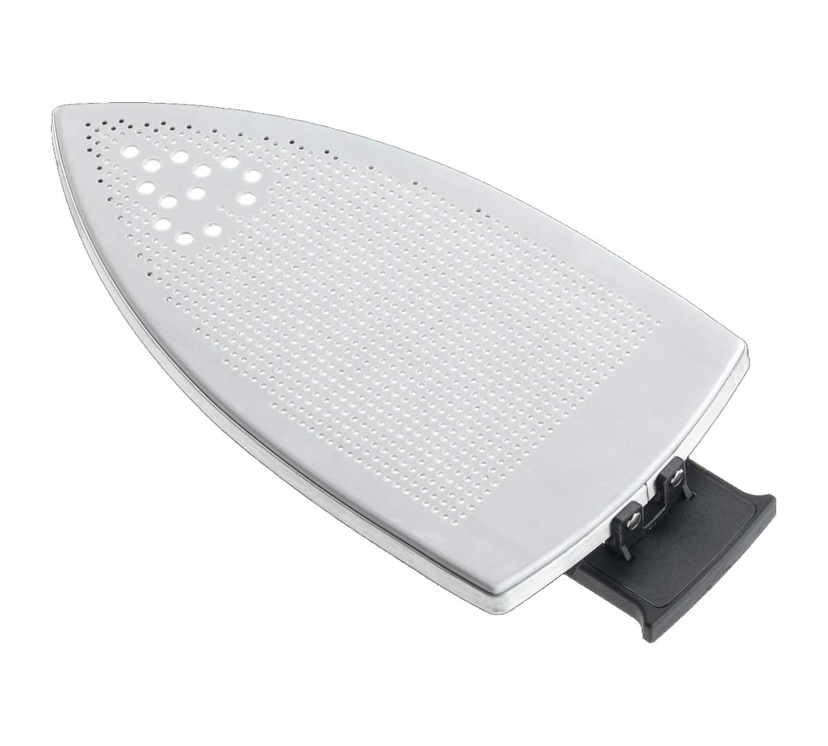 Base antiadherente de aluminio recubierto de teflón. Diseñada para evitar el brillo en prendas oscuras y delicadas, y facilitar el acabado directo sobre aplicaciones o impresiones. Es compatible con la plancha del Sistema de Planchado PIB 100 de Miele. Se encaja en la plancha.