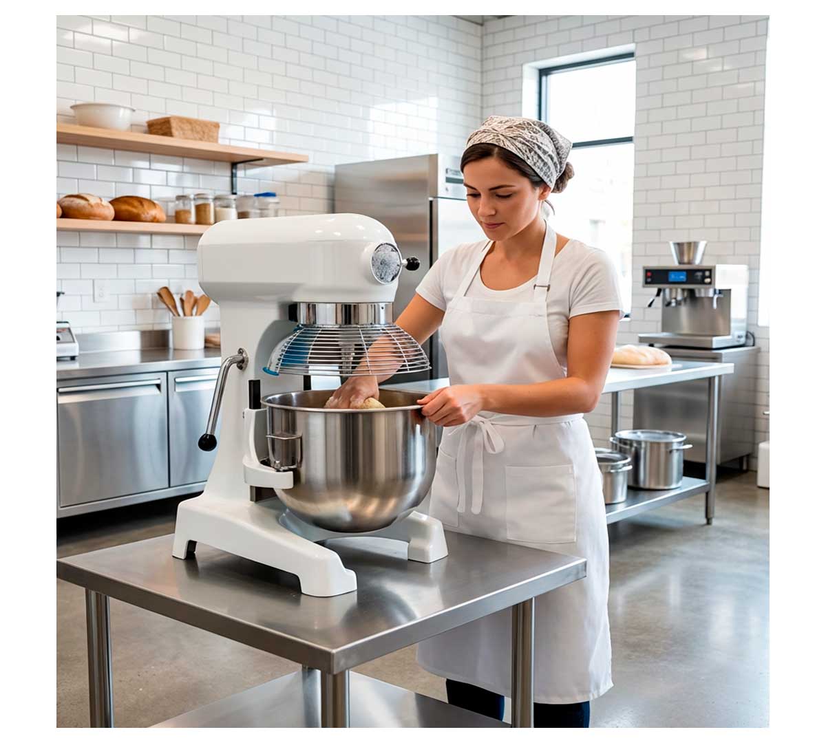 Procesa diferentes tipos de masas mezclas para postres, montado de natas, masas de pasta madre o pasta normal.