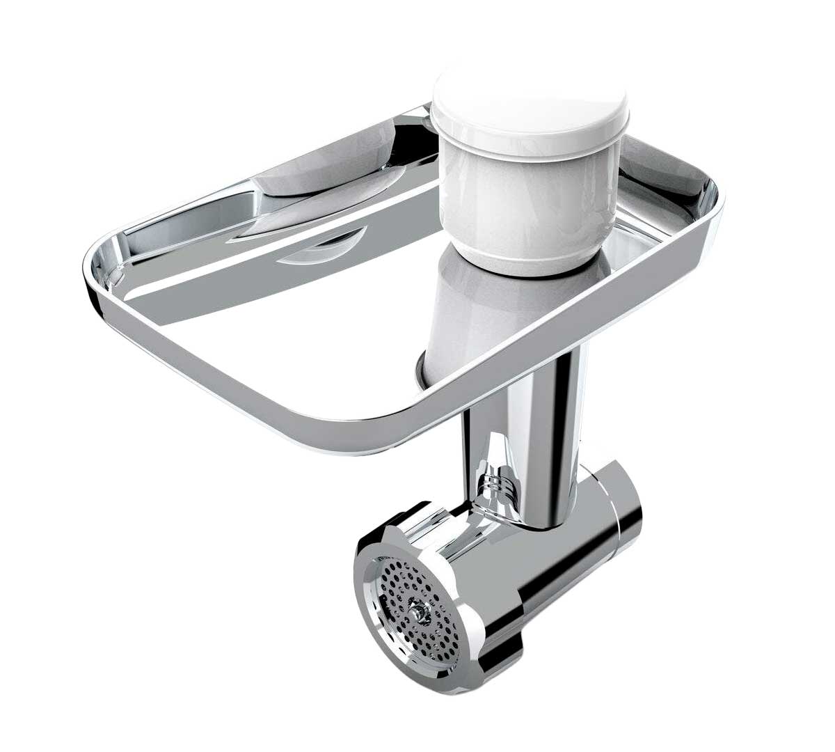 Conjunto completo para picar carne que incluye picadora, empujador, bandeja extraíble, conjunto de embutido, cuchilla y 3 placas. Compatible con la amasadora planetaria BlackBolt de Hendi.