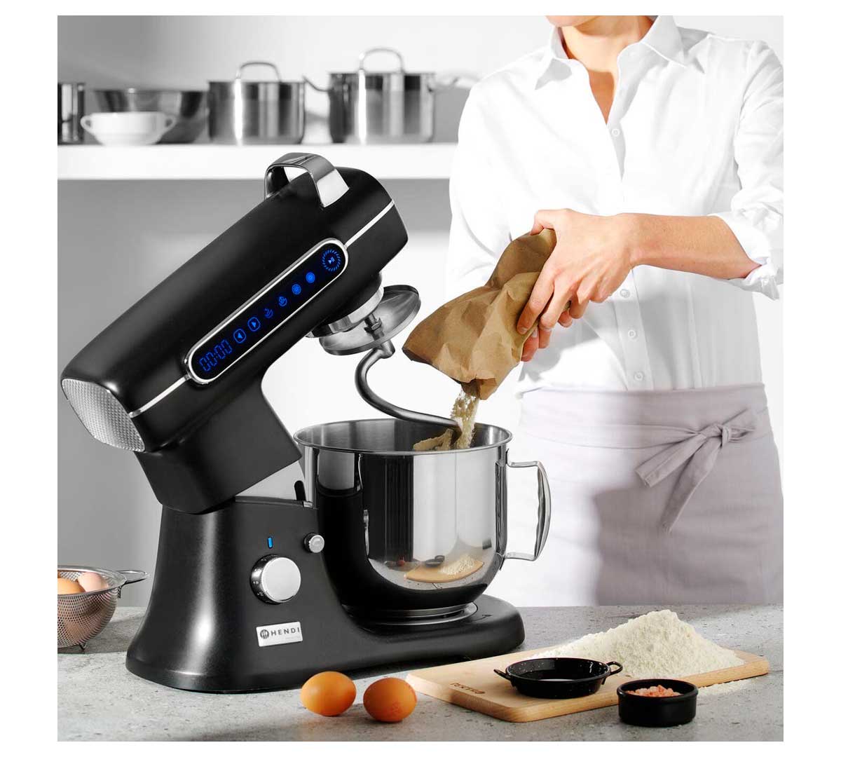 La Amasadora Planetaria BlackBolt de Hendi es una solución robusta y versátil para quienes buscan un equipo de mezclado y amasado eficiente, fiable y preparado. Diseñada para amasar la masa y batir las claras de huevo.
