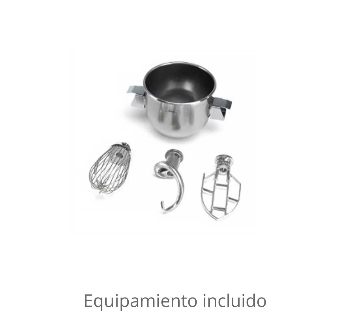 Amasadora de sobremesa con cuba de acero inoxidable. Con variador de velocidad y sistema continuo, sin escalonamientos. Ideal para la preparación de masas, claras, salsas y mezclas. Tiene una potencia de 250 o 300 W según modelo.
