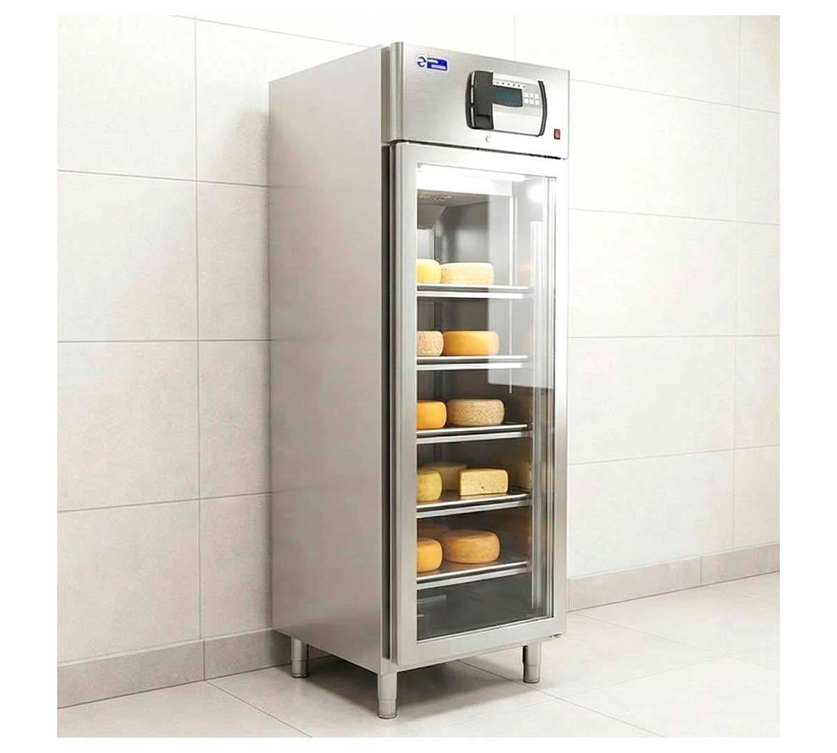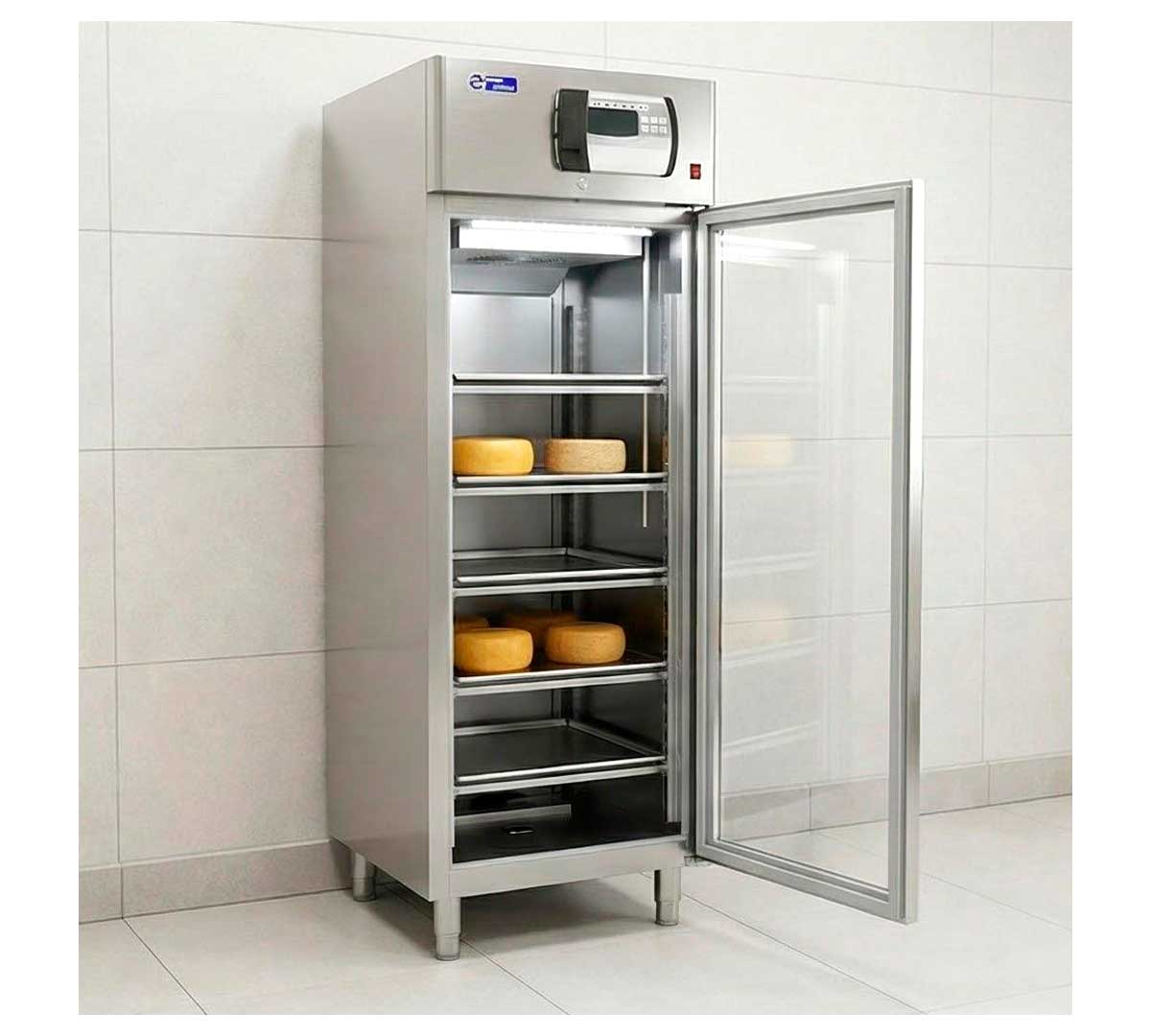 Secadero especial para el curado y maduración de quesos de forma controlada. Es ideal para queserías y tiendas especializadas. Equipado con puertas de cristal y luz led. Tiene capacidad para 5 parrillas y 5 bandejas recoge suero. Temperatura 0/30 ºC.