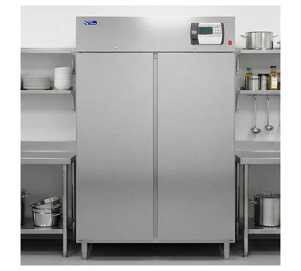 Armario especial para el secado y curado de quesos. Refrigerado por aire. Capacidad para 10 parrillas y 10 bandejas recoge suero. Con 2 puertas opacas. Temperatura 0/ +30 ºC.