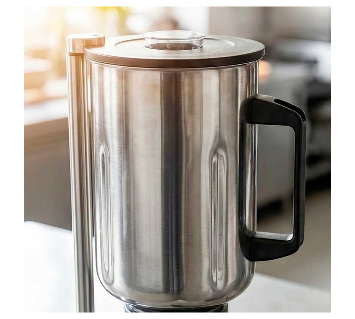 Batidora de vaso recomendada para preparar batidos y bebidas a base de frutas y verduras. El vaso es de acero inoxidable. Con sistema de seguro activo con apagado automático del motor.