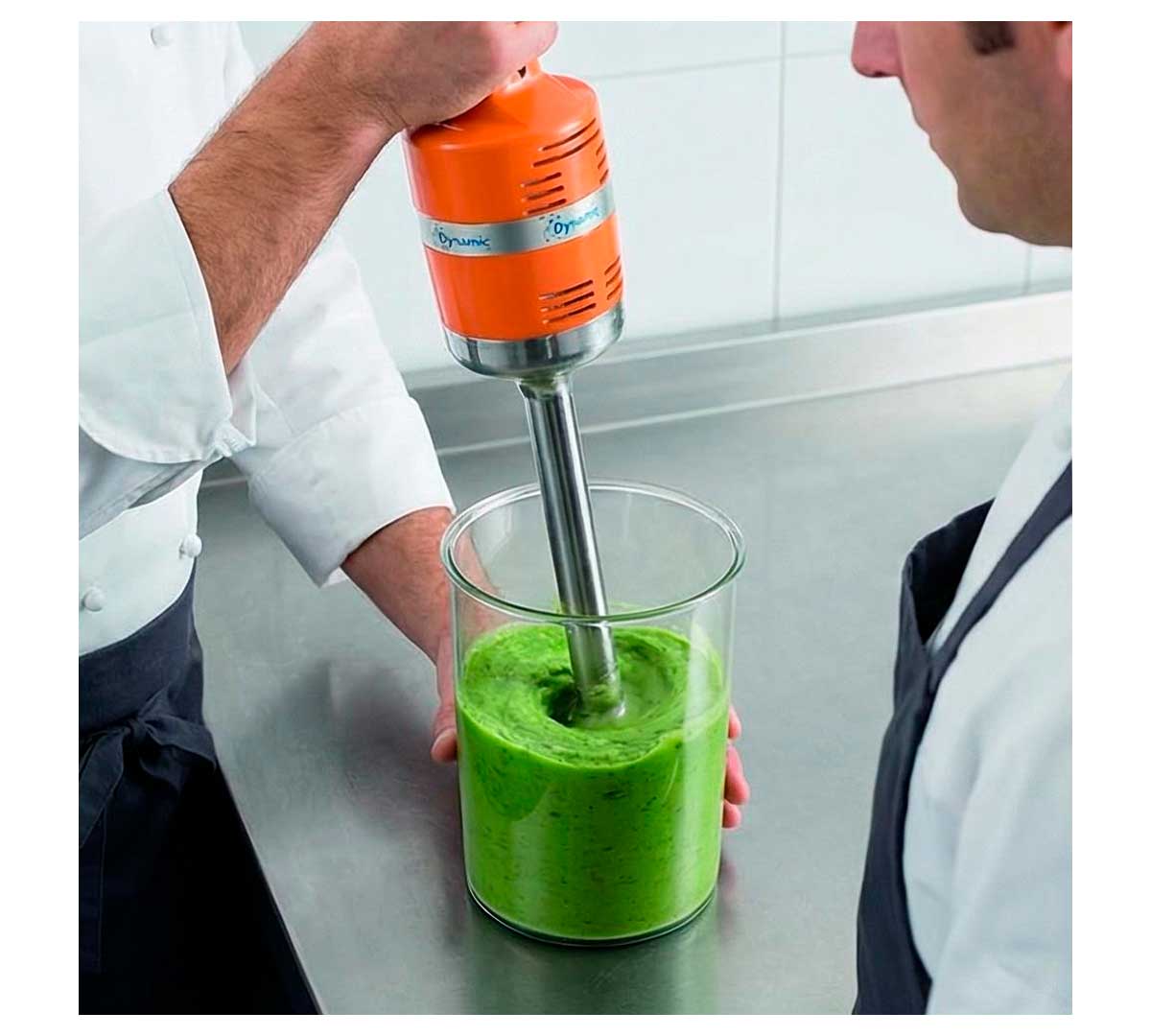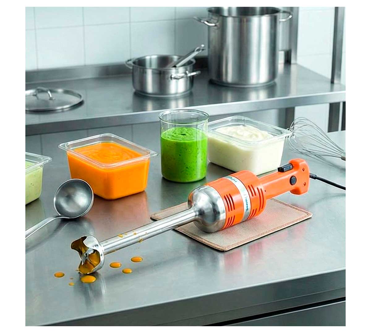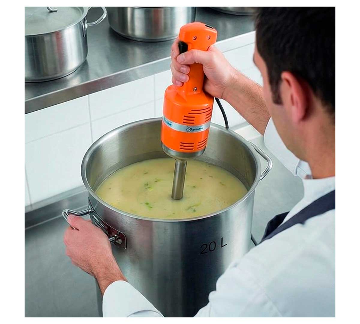Triturador profesional de la gama Junior, con velocidad fija. El más ligero del mercado y ultrarresistente, está fabricado en acero inoxidable. De diseño monobloc con motor de 270 W y brazo triturador fijo con capacidad de procesar de 1 a 25 litros.