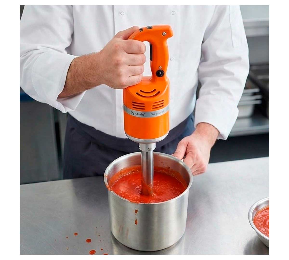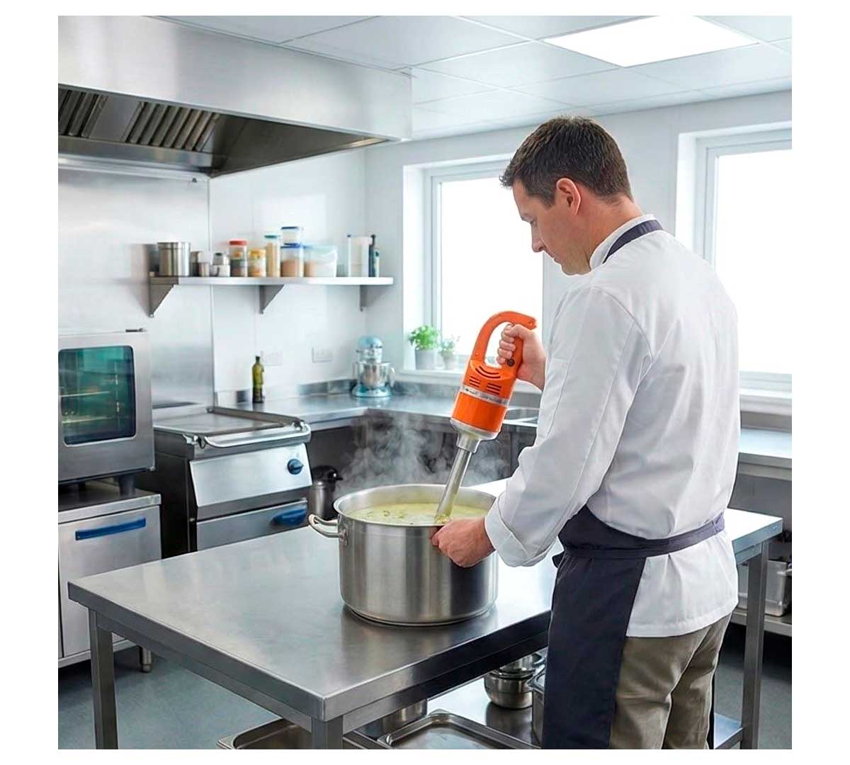 Perfecto para triturar y mezclar ingredientes en ollas, marmitas o recipientes de gran capacidad, este triturador se adapta a cocinas que requieren procesar desde 40 hasta 100 litros en una sola operación. Es especialmente útil para la preparación de purés, cremas, sopas y salsas en volúmenes elevados.