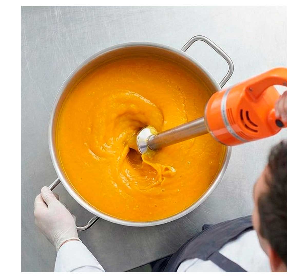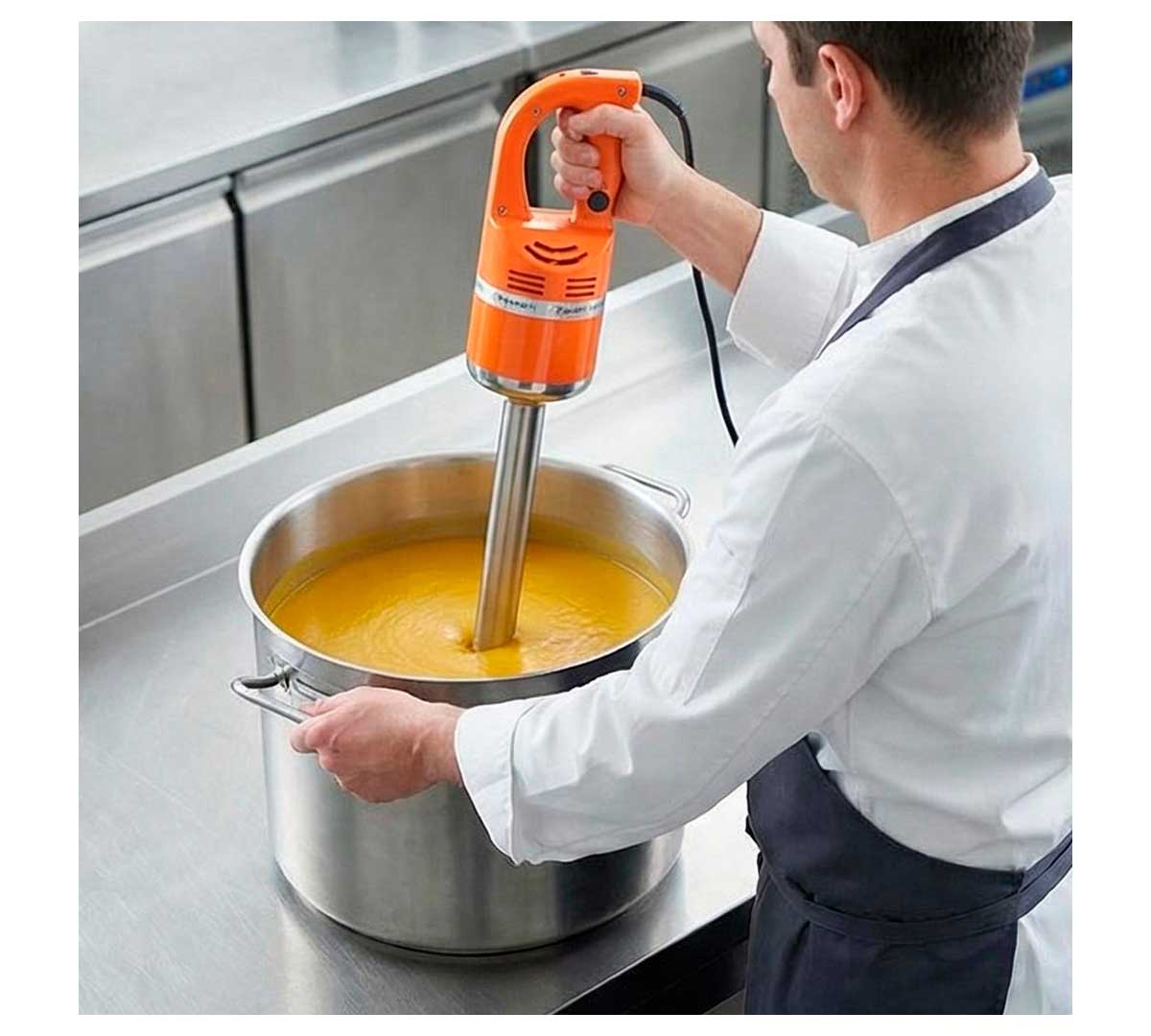 Triturador de la gama profesional Máster. Con motor de velocidad fija. Es cómodo, ergonómico y ligero para un uso fácil y seguro. Es robusto, de brazo triturador fijo. Provisto de cuchilla de 3 aspas. Es ideal para restauración tradicional y colectiva.